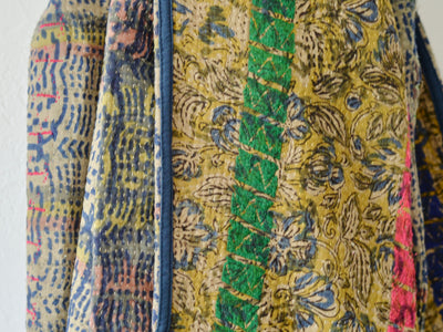 カンタキルト、ラリーキルト、グドゥリーと、様々な呼び名があるこの布は、インドの手仕事が詰まっています。