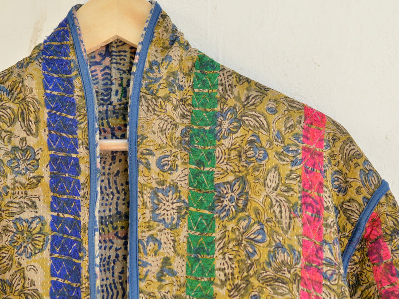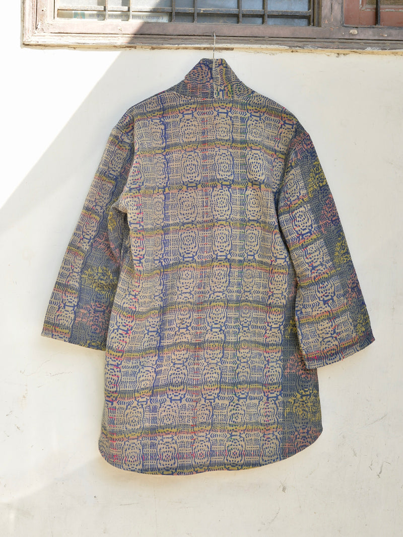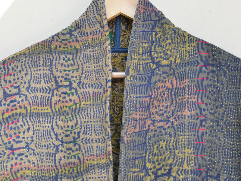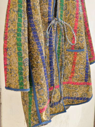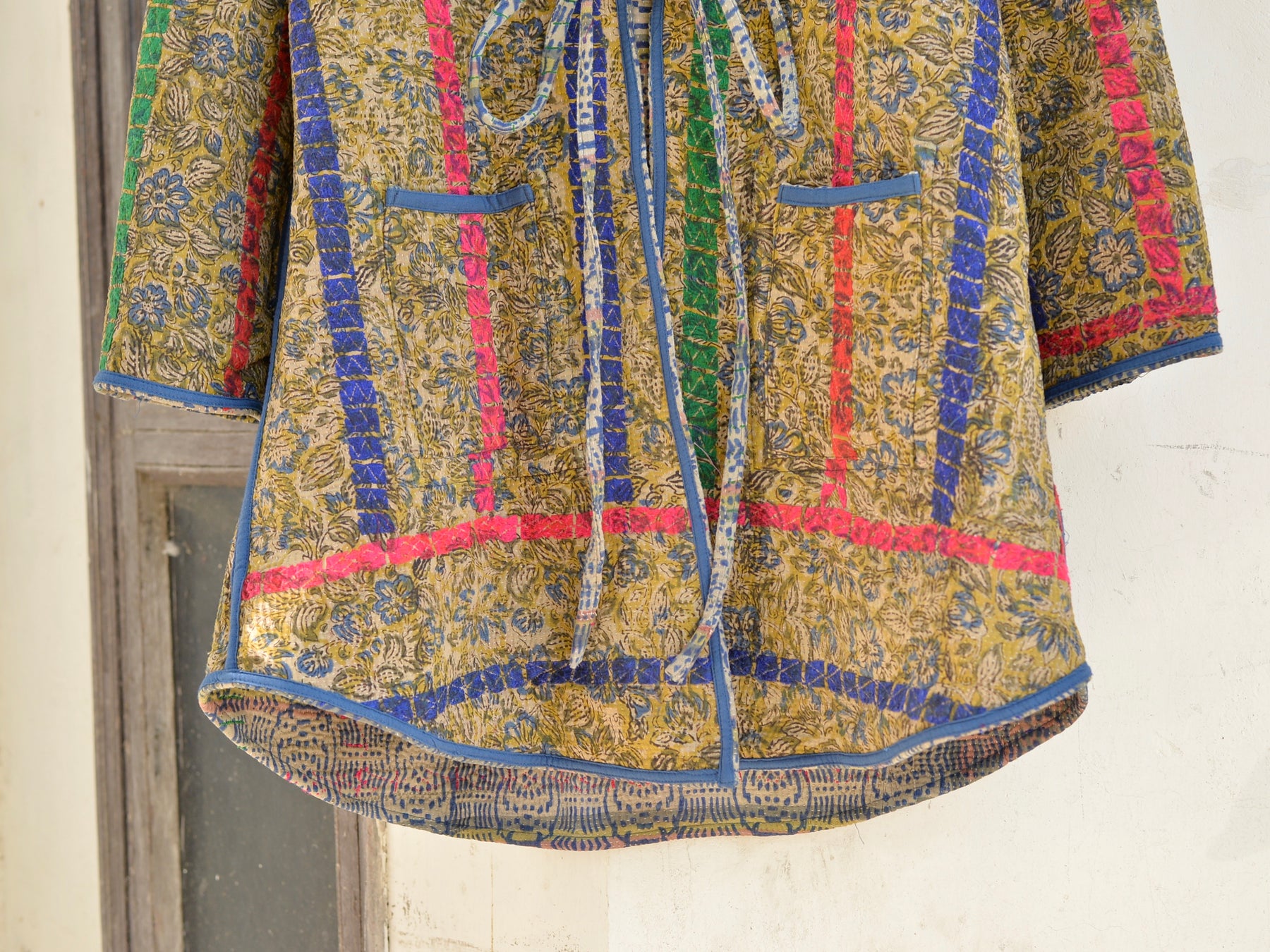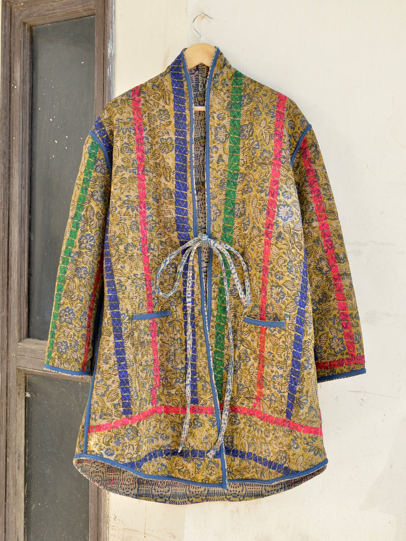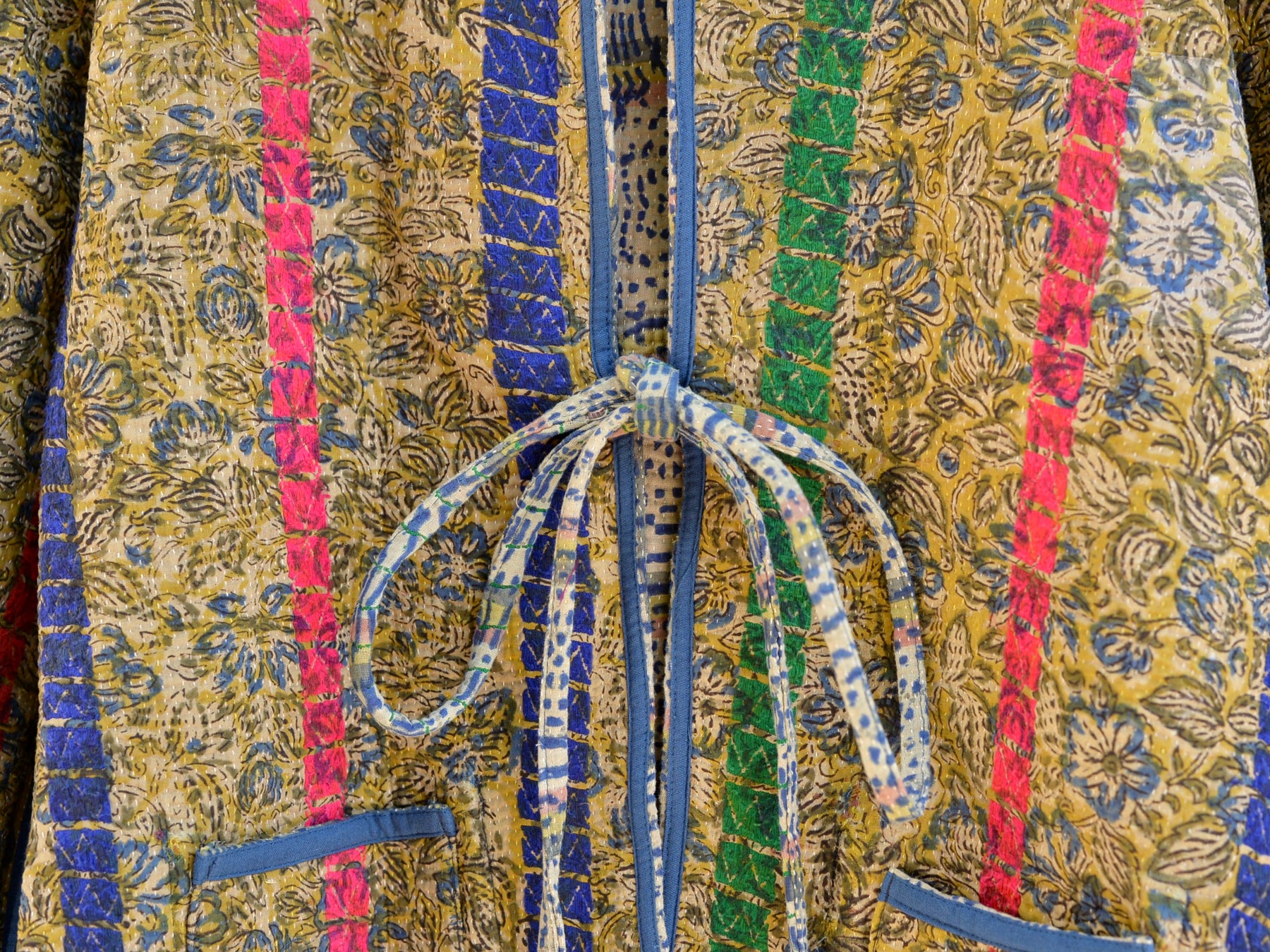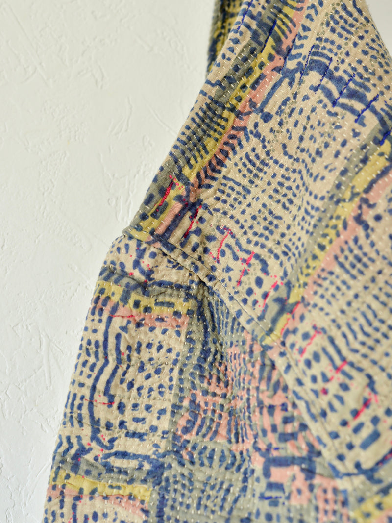インドで膨大なストックの中から選んだカンタキルトをジャケットに仕立ててもらいました。