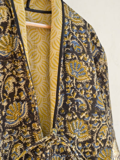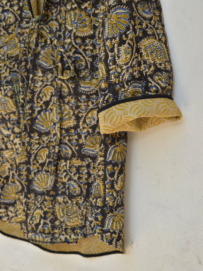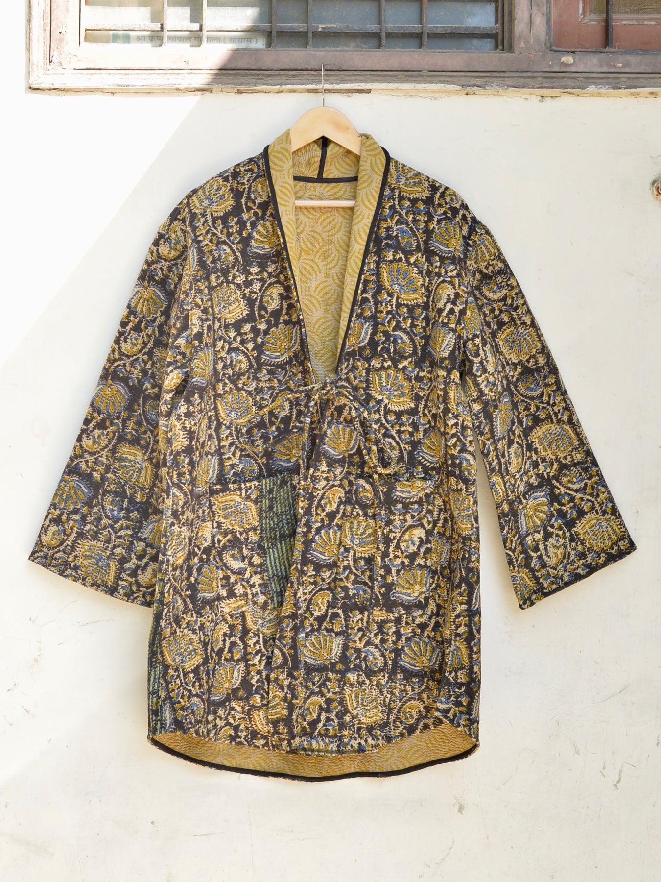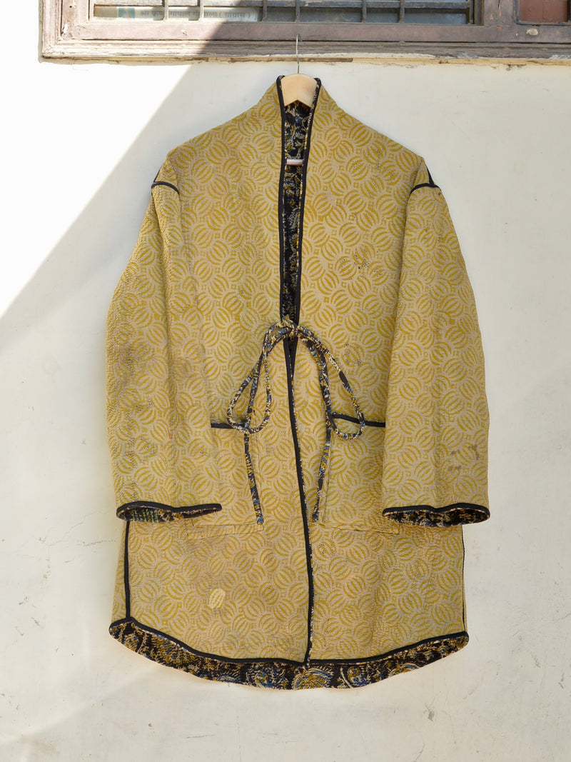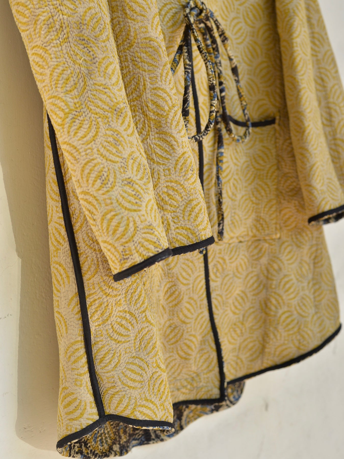 インドで膨大なストックの中から選んだカンタキルトをジャケットに仕立ててもらいました。