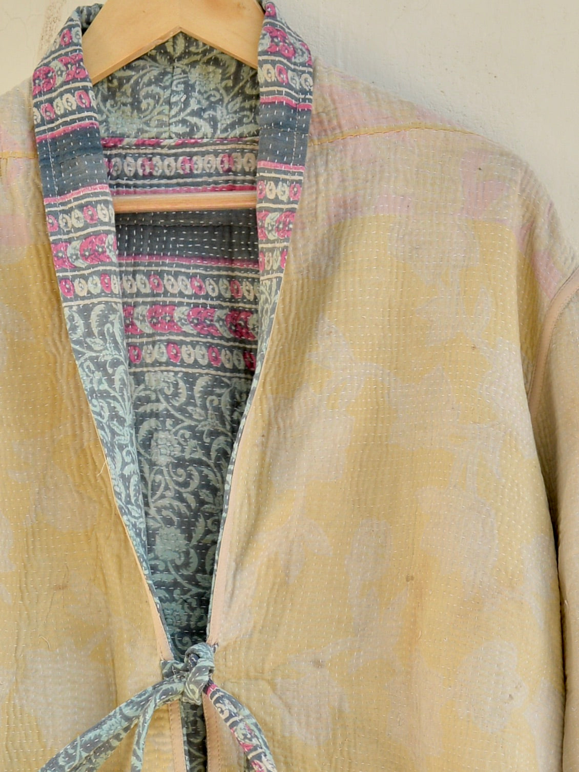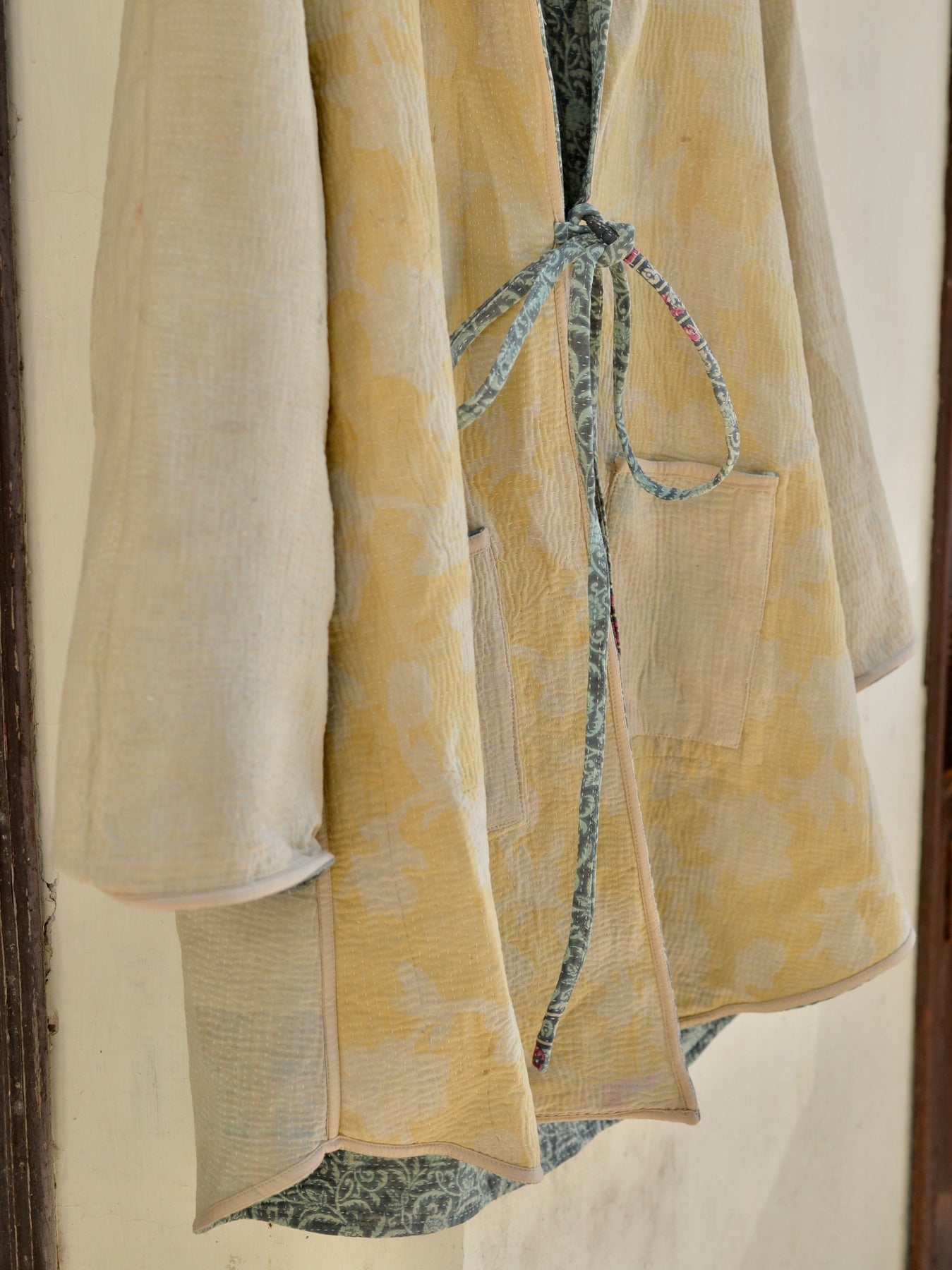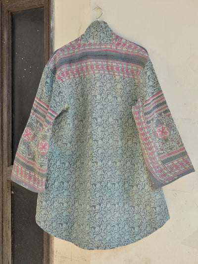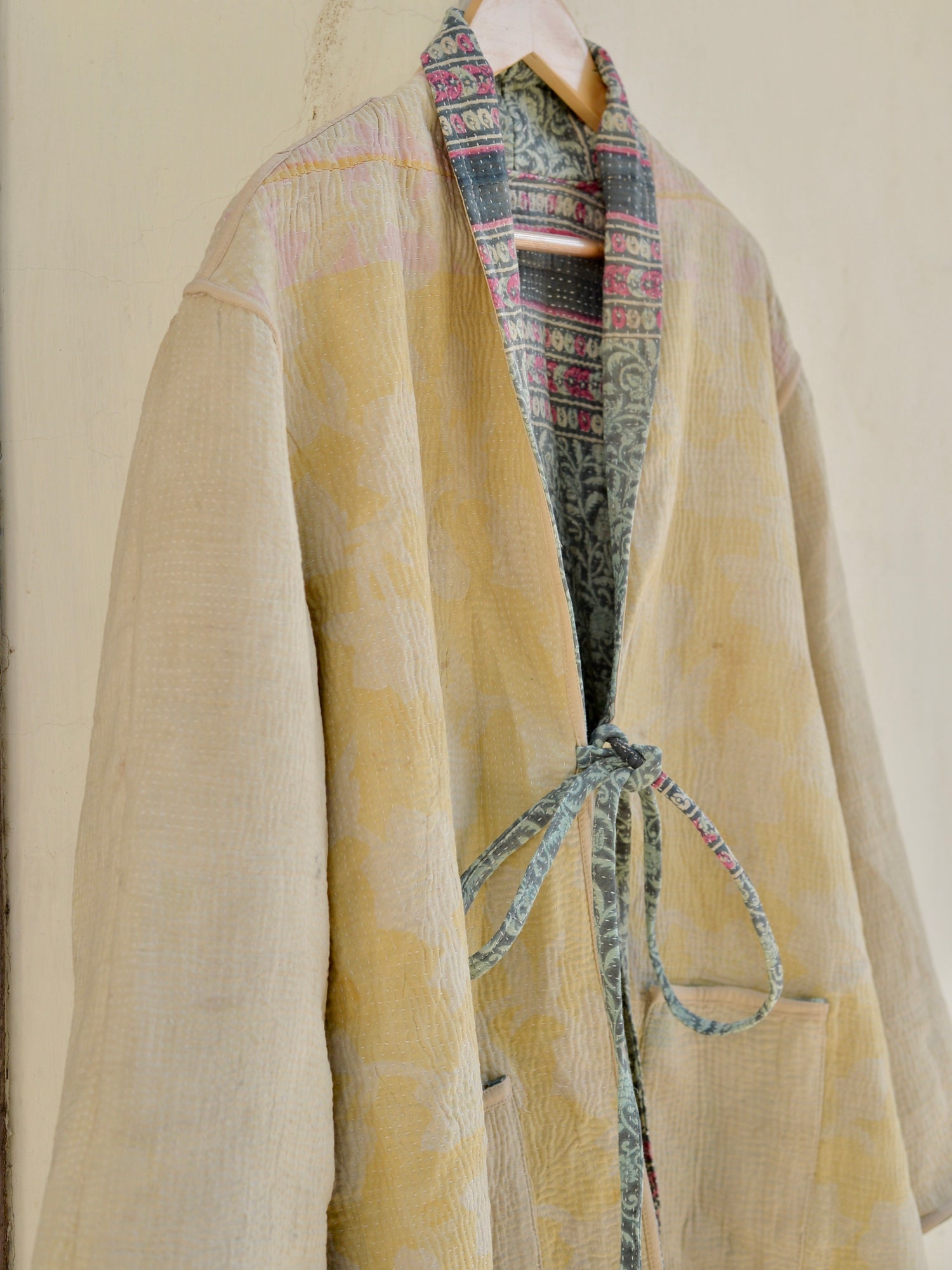 インドで膨大なストックの中から選んだカンタキルトをジャケットに仕立ててもらいました。
