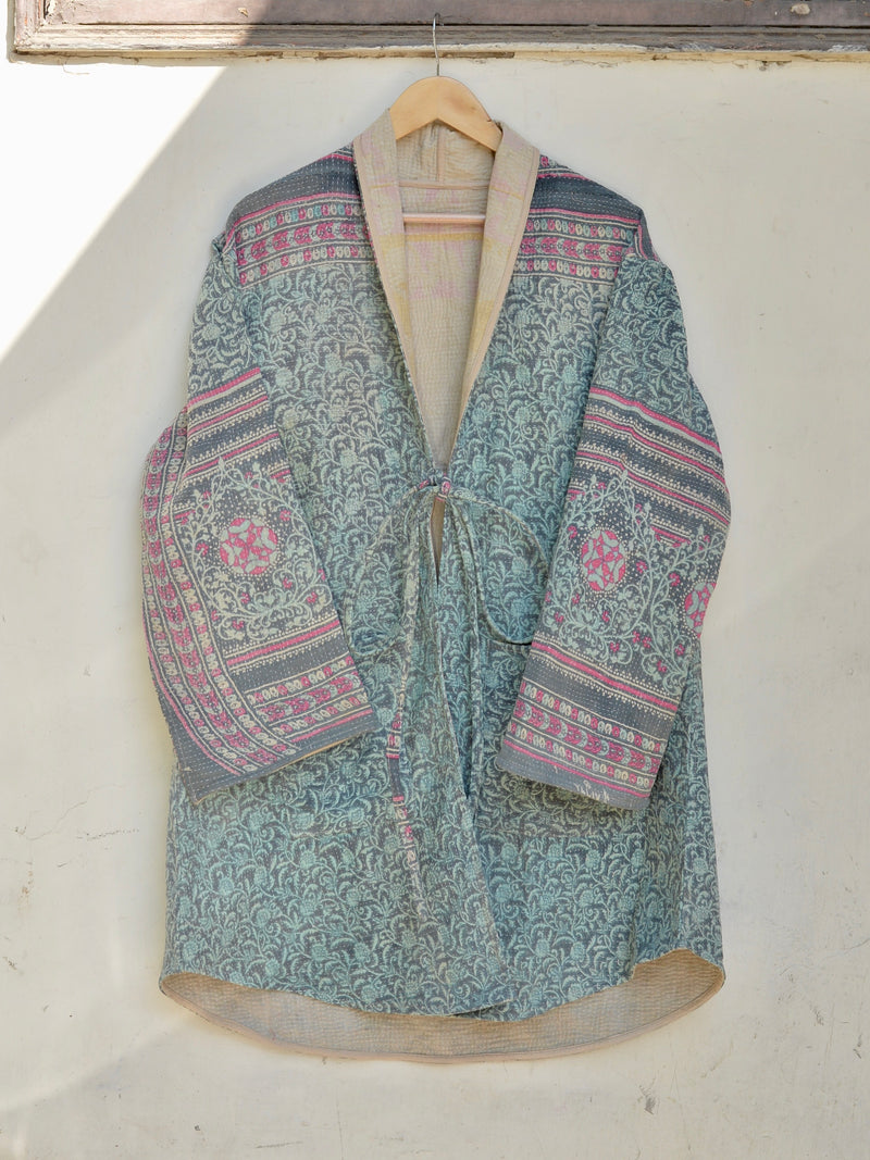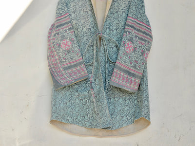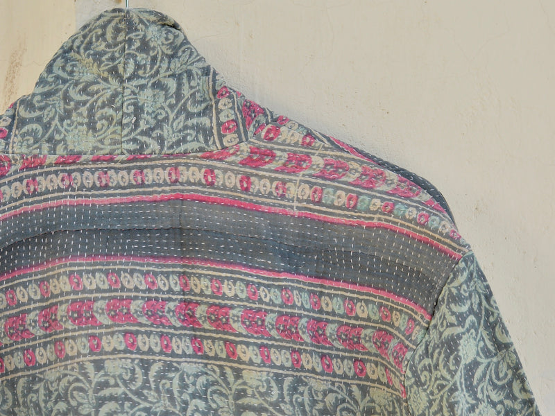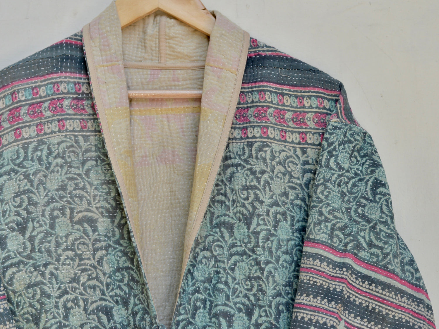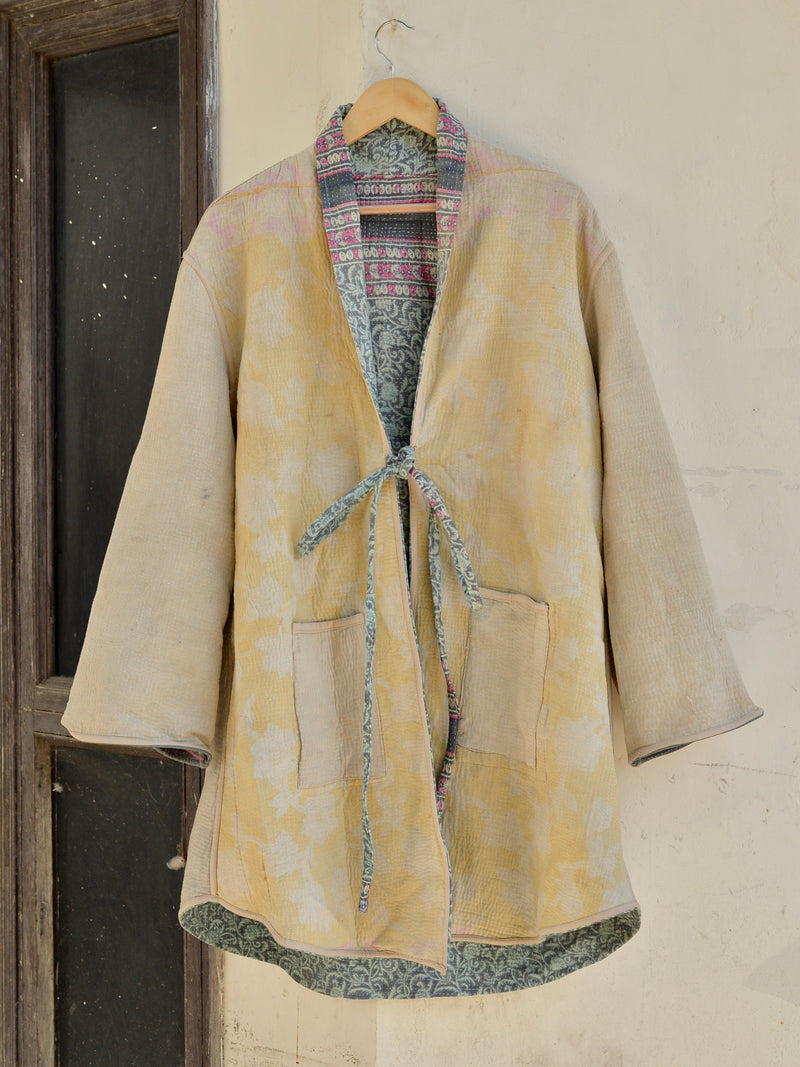 インドで膨大なストックの中から選んだカンタキルトをジャケットに仕立ててもらいました。
