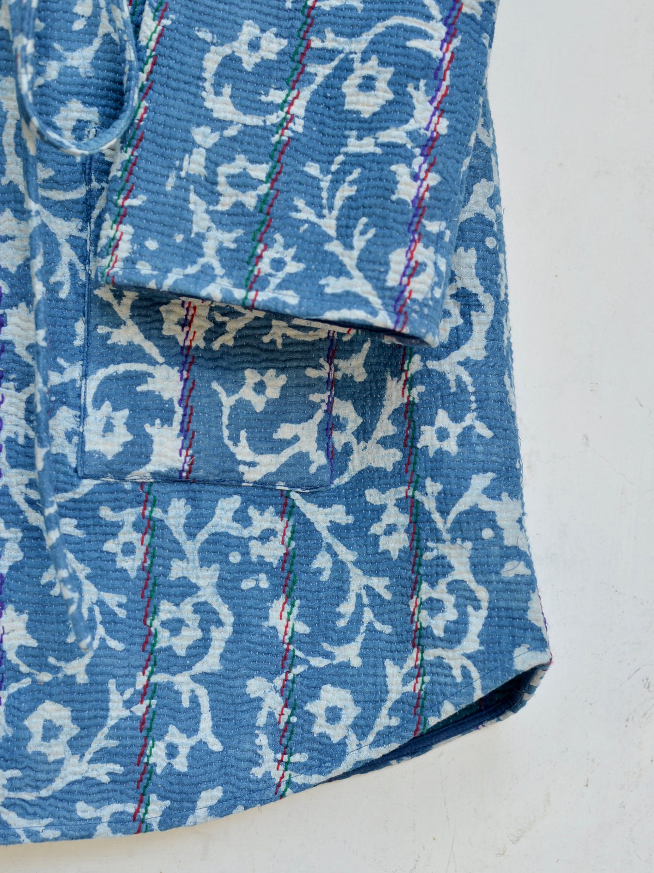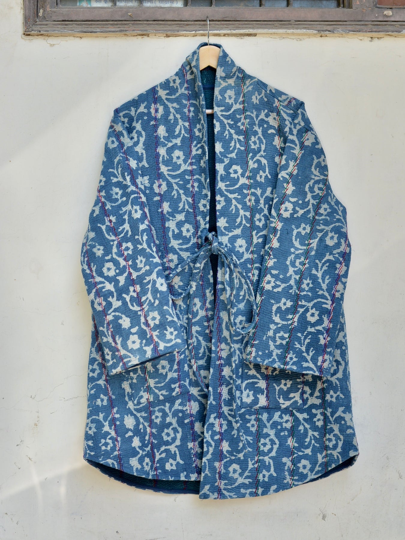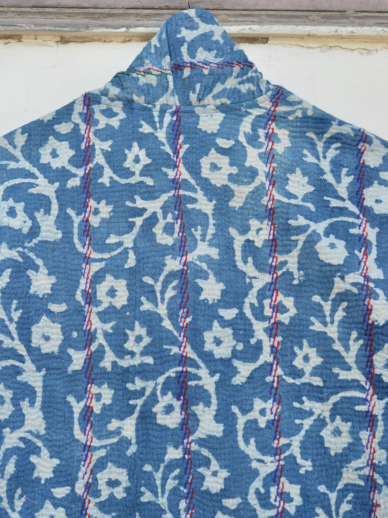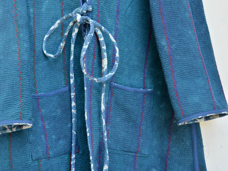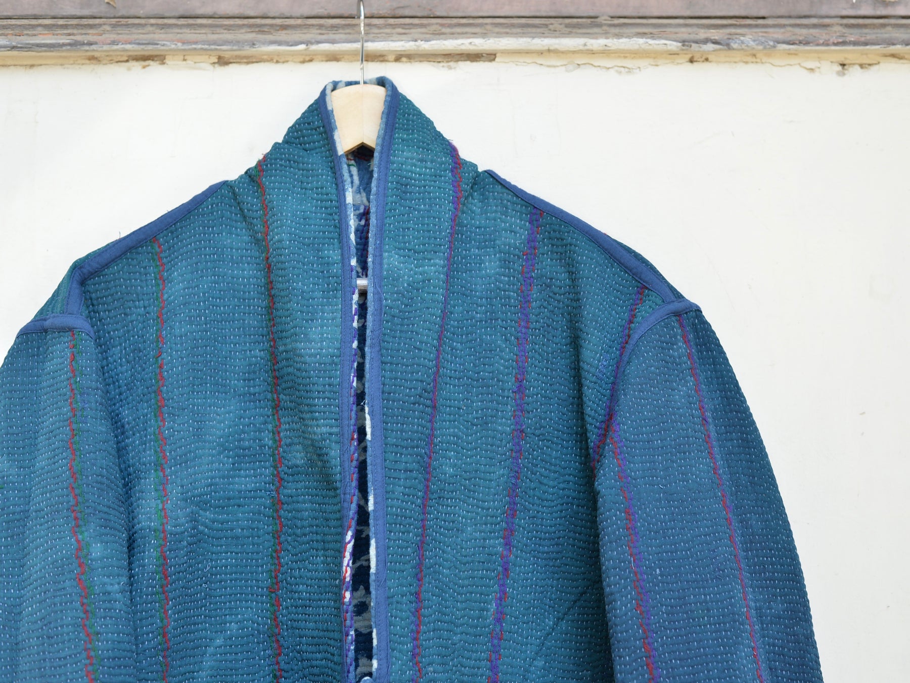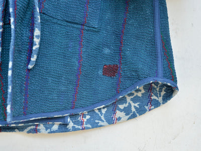 インドで膨大なストックの中から選んだカンタキルトをジャケットに仕立ててもらいました。