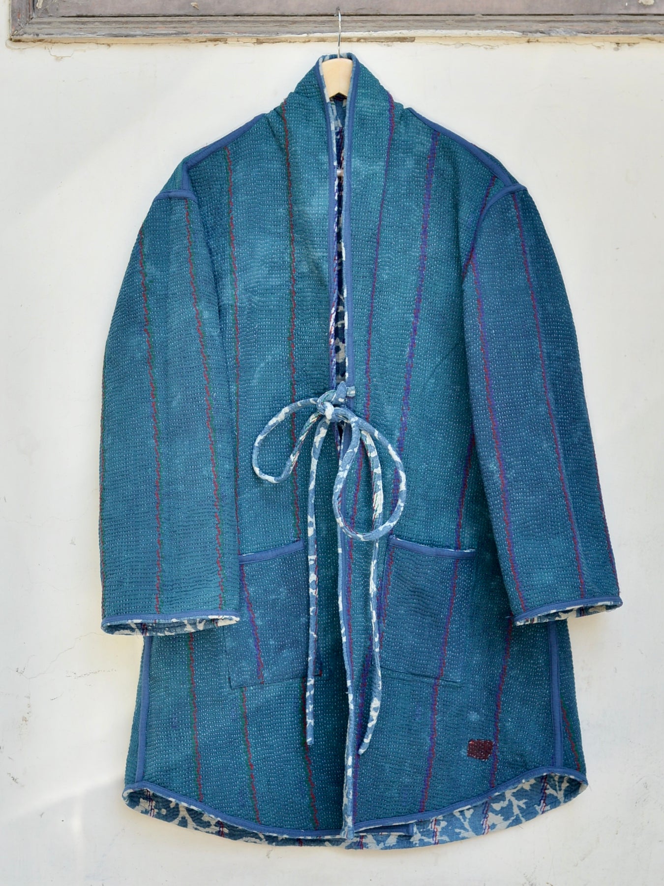 数枚の布を貼り合わせているため裏表が異なるリバーシブルのジャケットになります。
