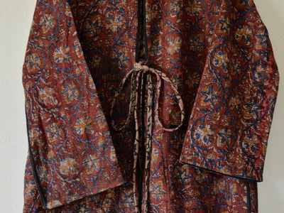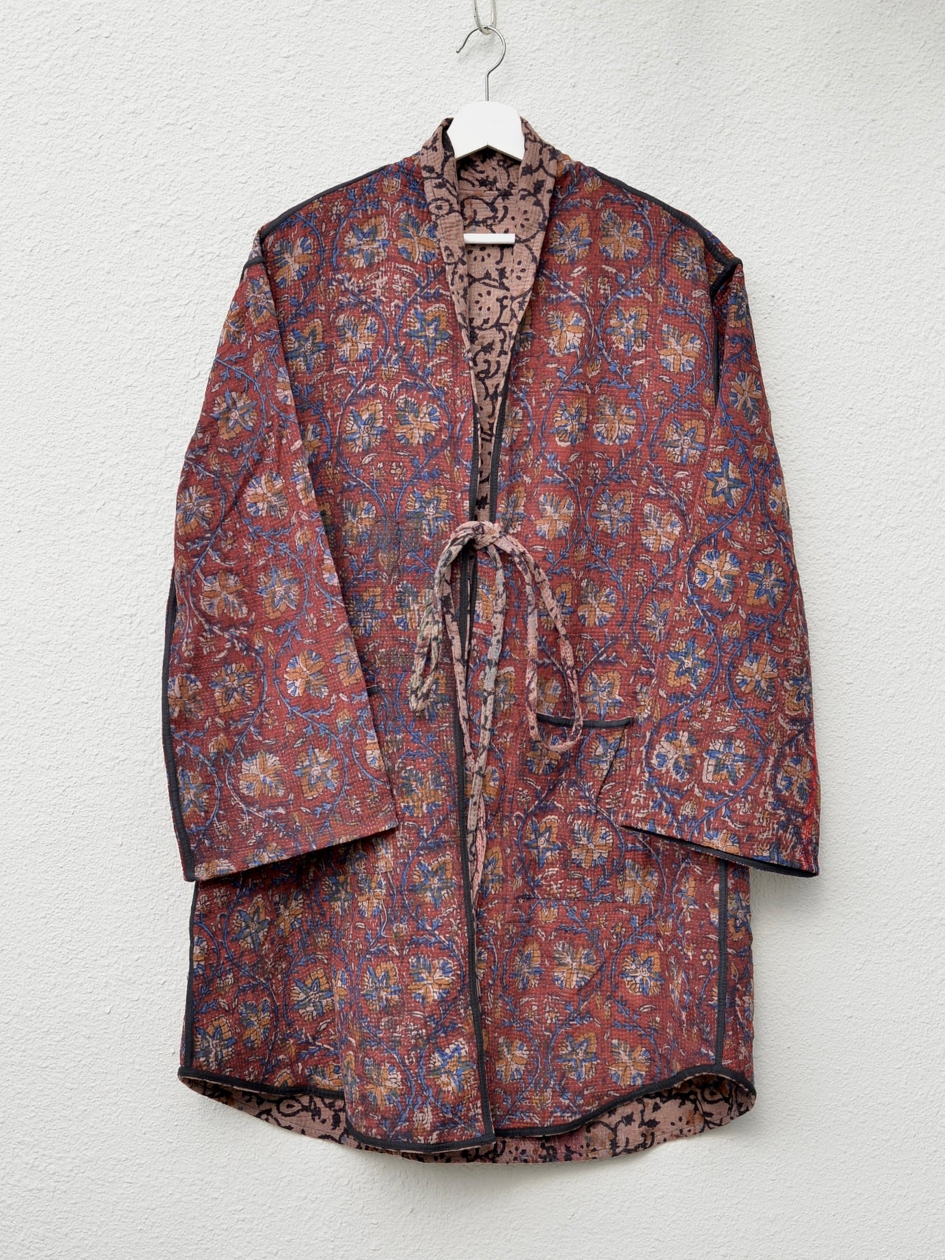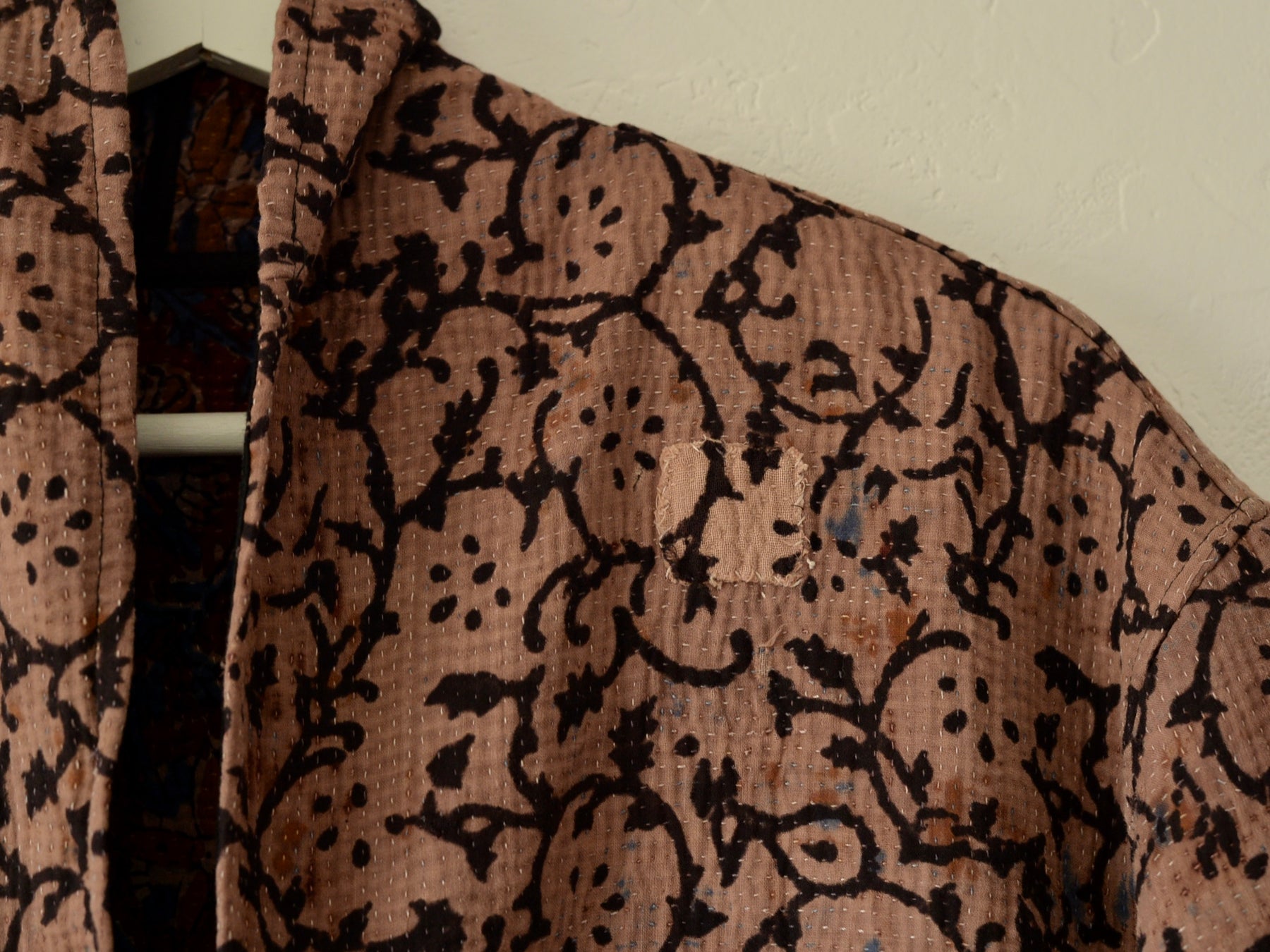 インドで膨大なストックの中から選んだカンタキルトをジャケットに仕立ててもらいました。