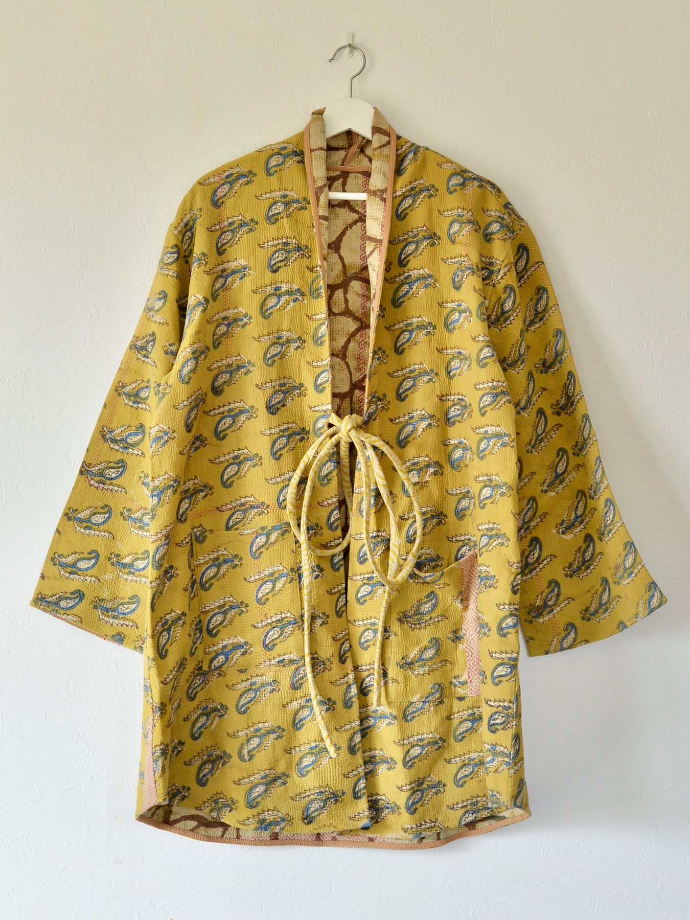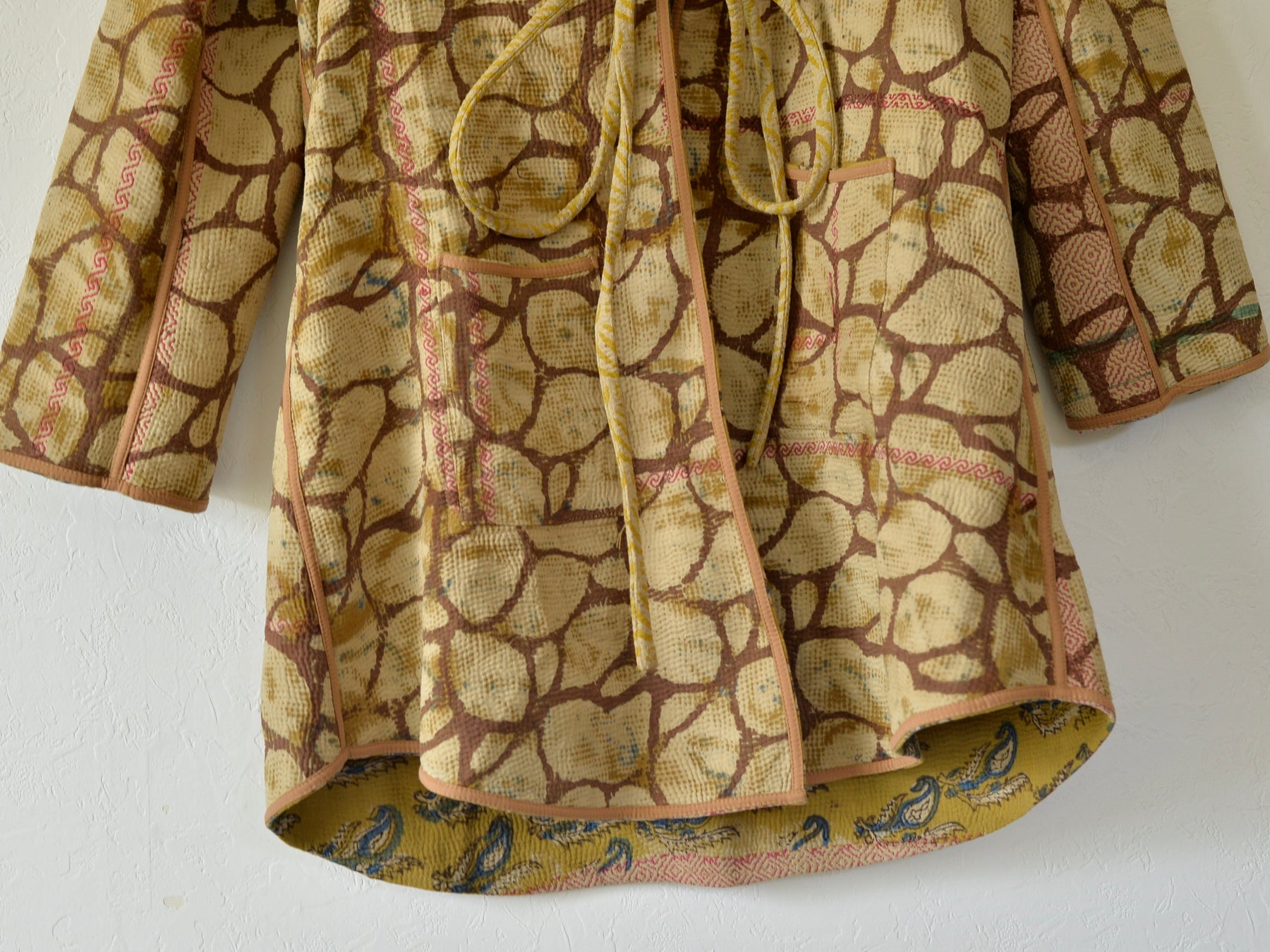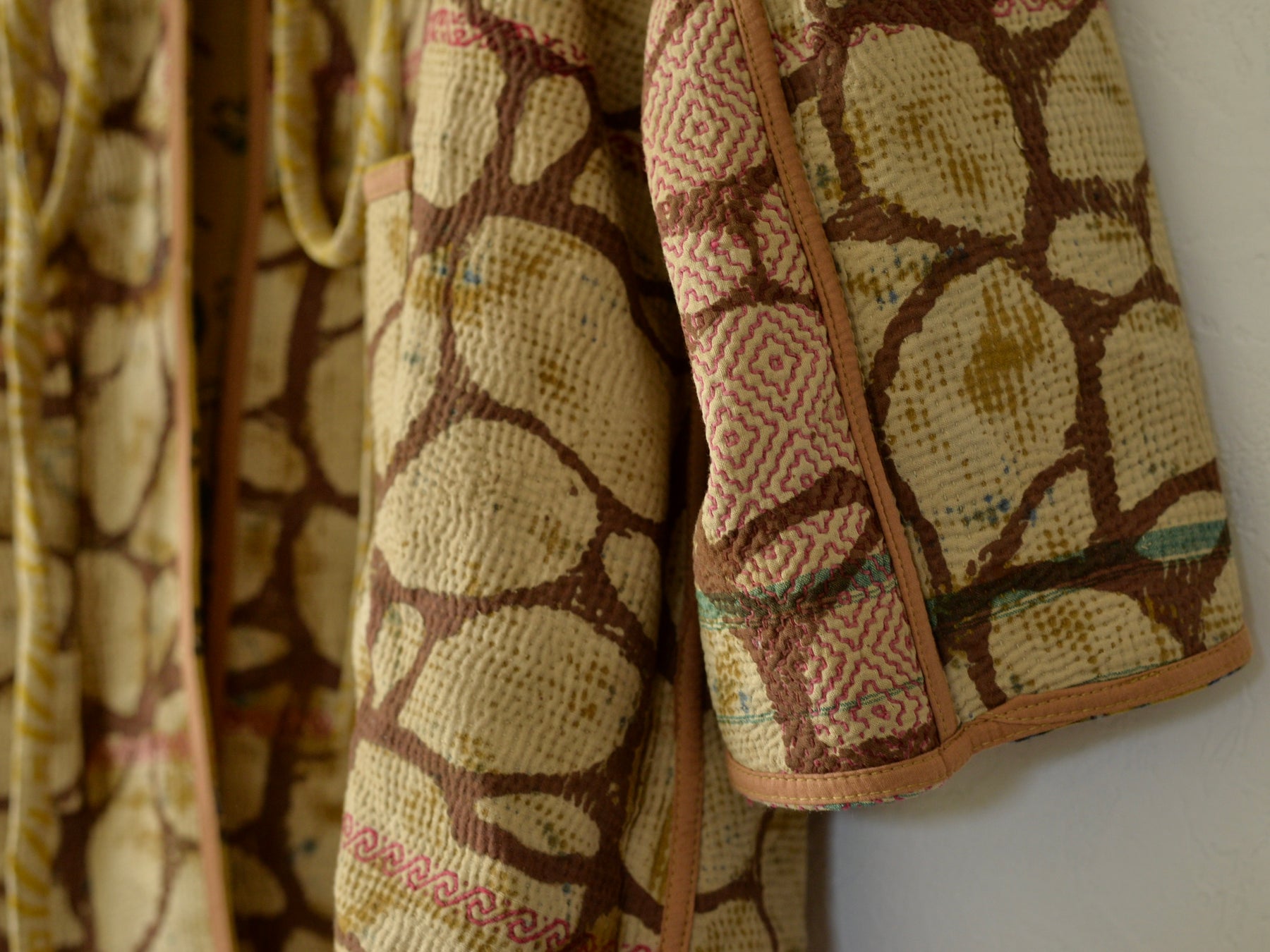 インドで膨大なストックの中から選んだカンタキルトをジャケットに仕立ててもらいました。