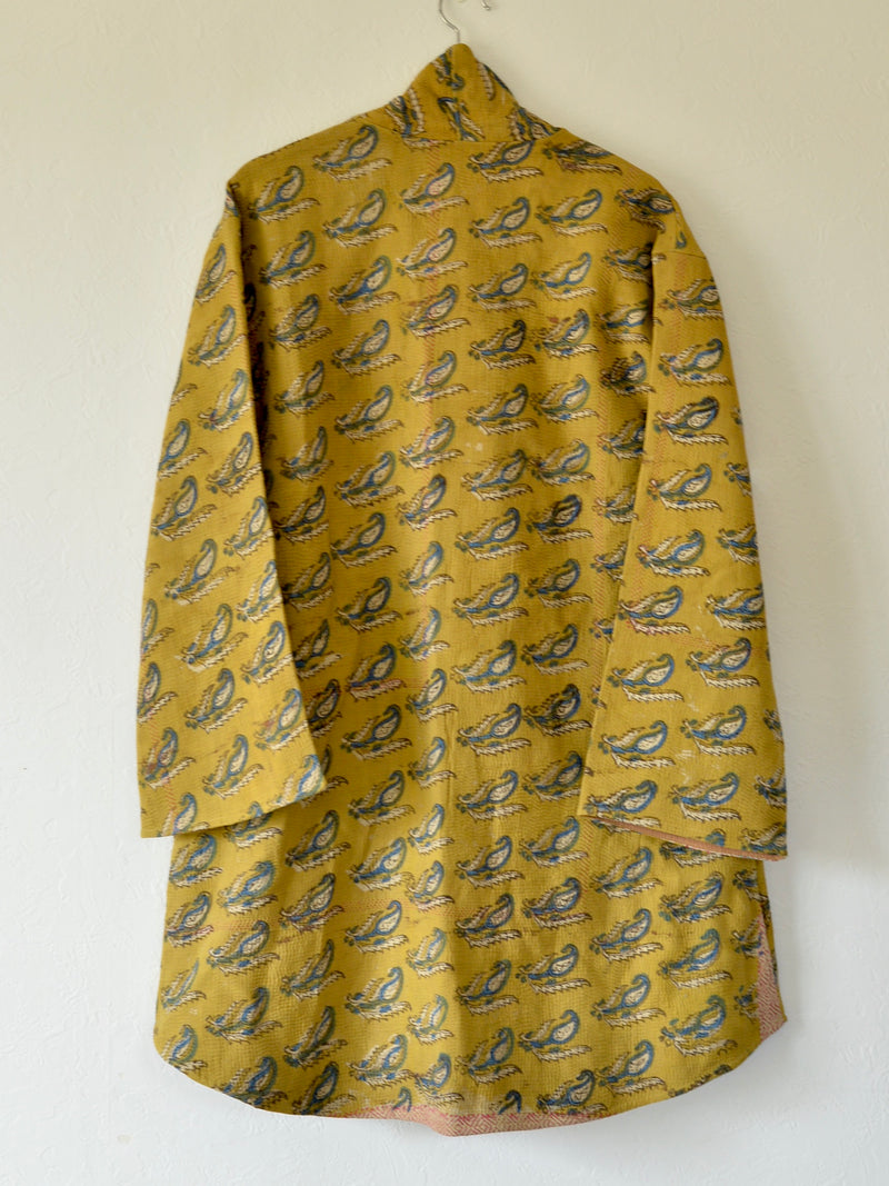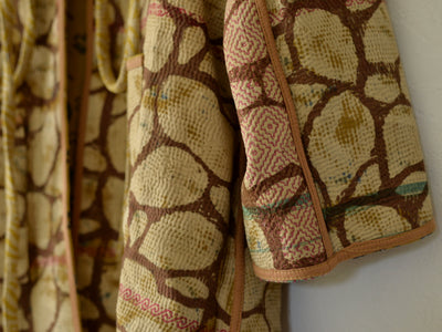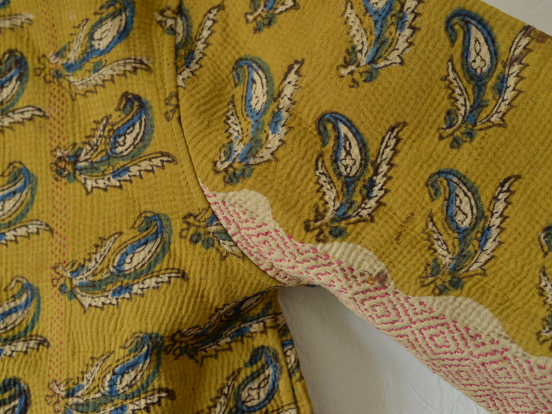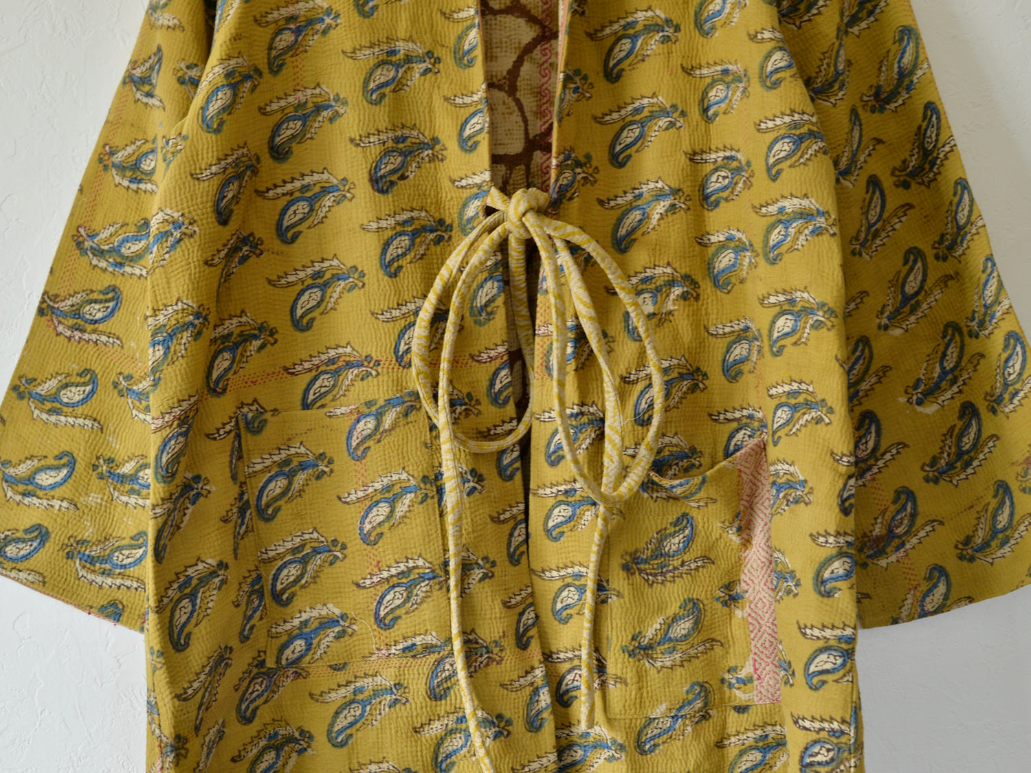 インドで膨大なストックの中から選んだカンタキルトをジャケットに仕立ててもらいました。