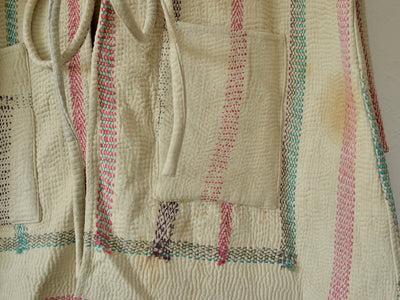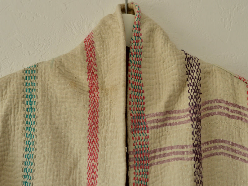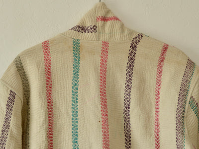 インドで膨大なストックの中から選んだカンタキルトをジャケットに仕立ててもらいました。