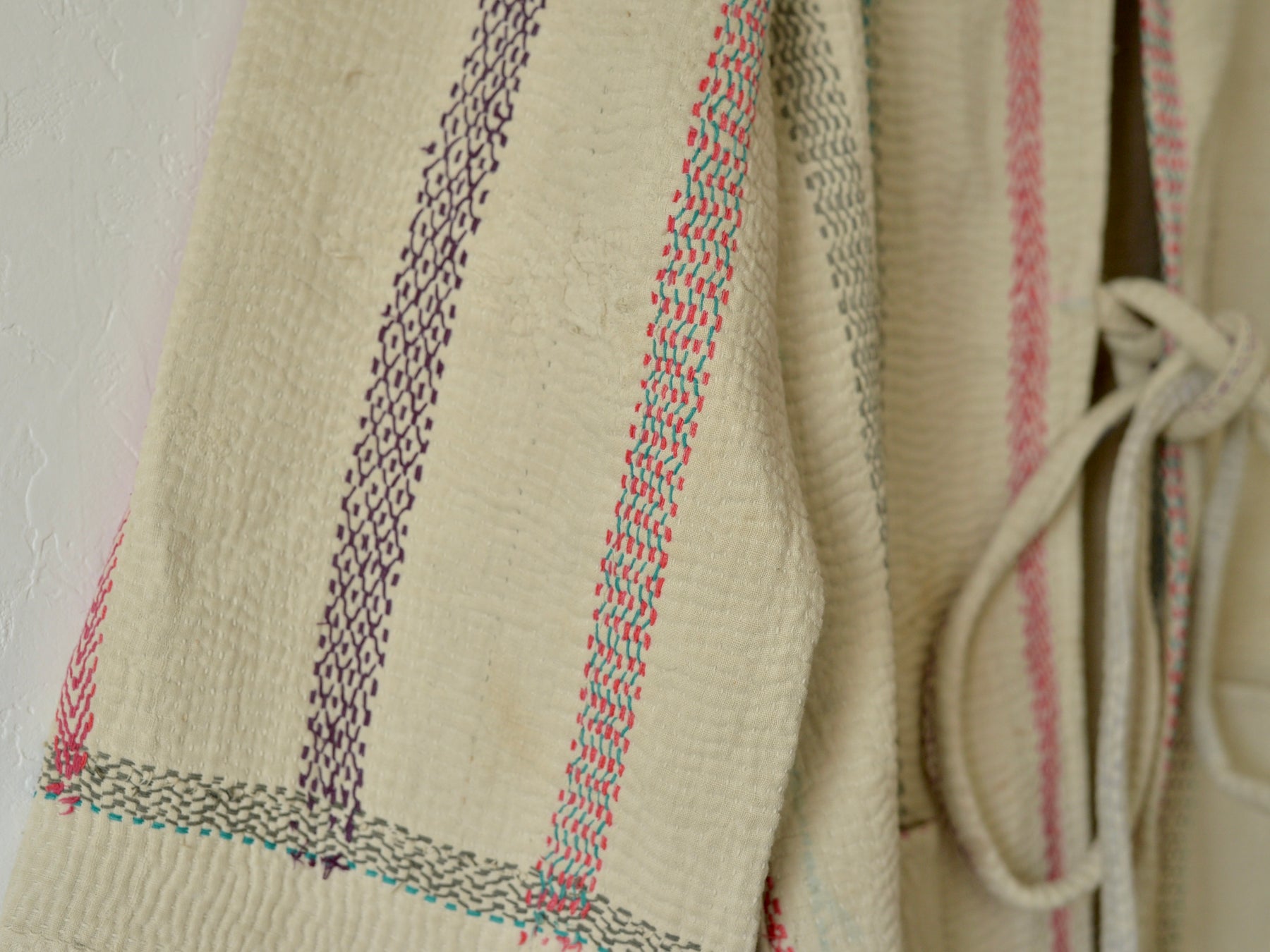 生地の織り、木版によるブロックプリント、何層にも重ねられた染め、刺繍で施された刺繍、丁寧な刺し子…