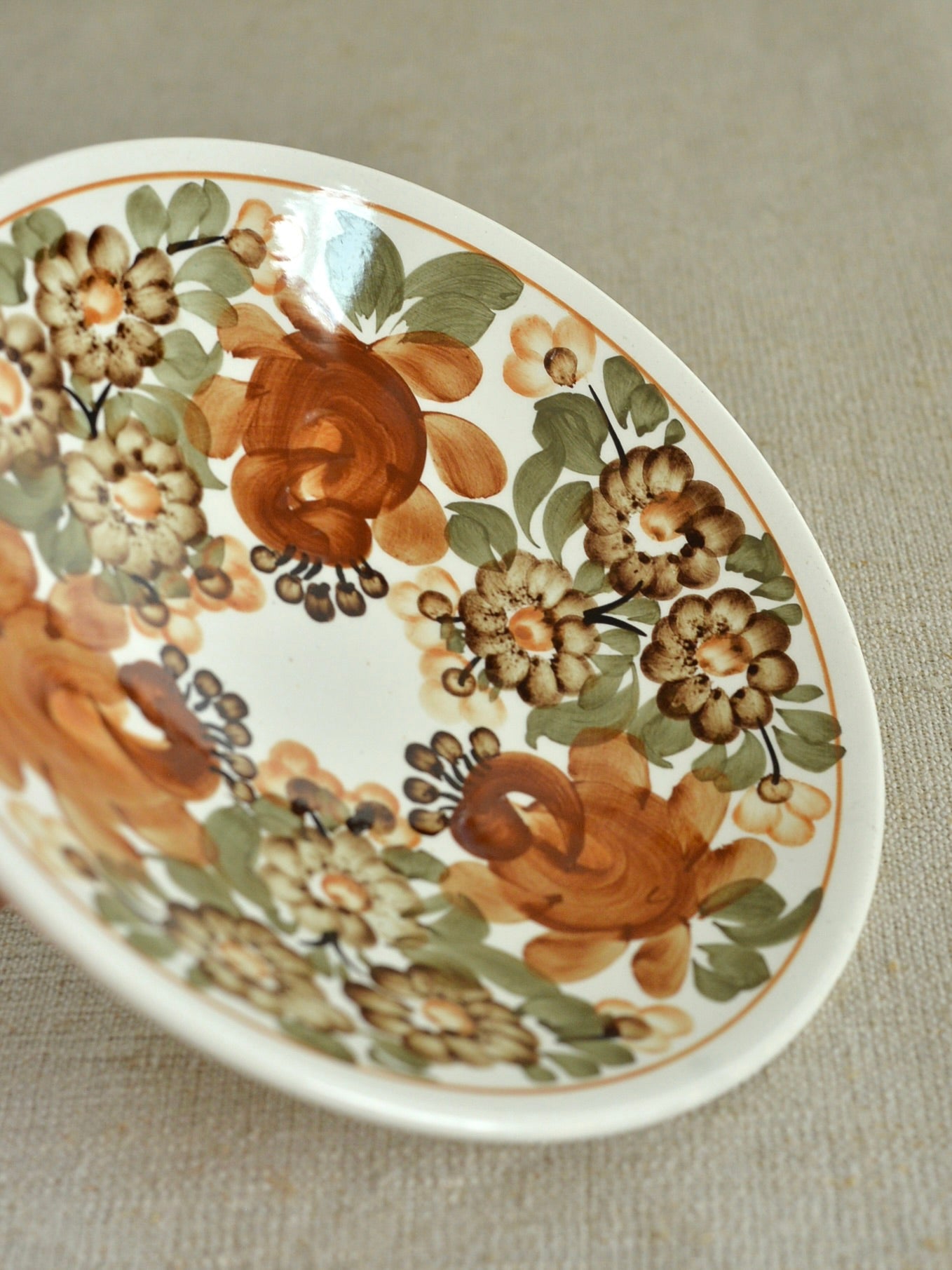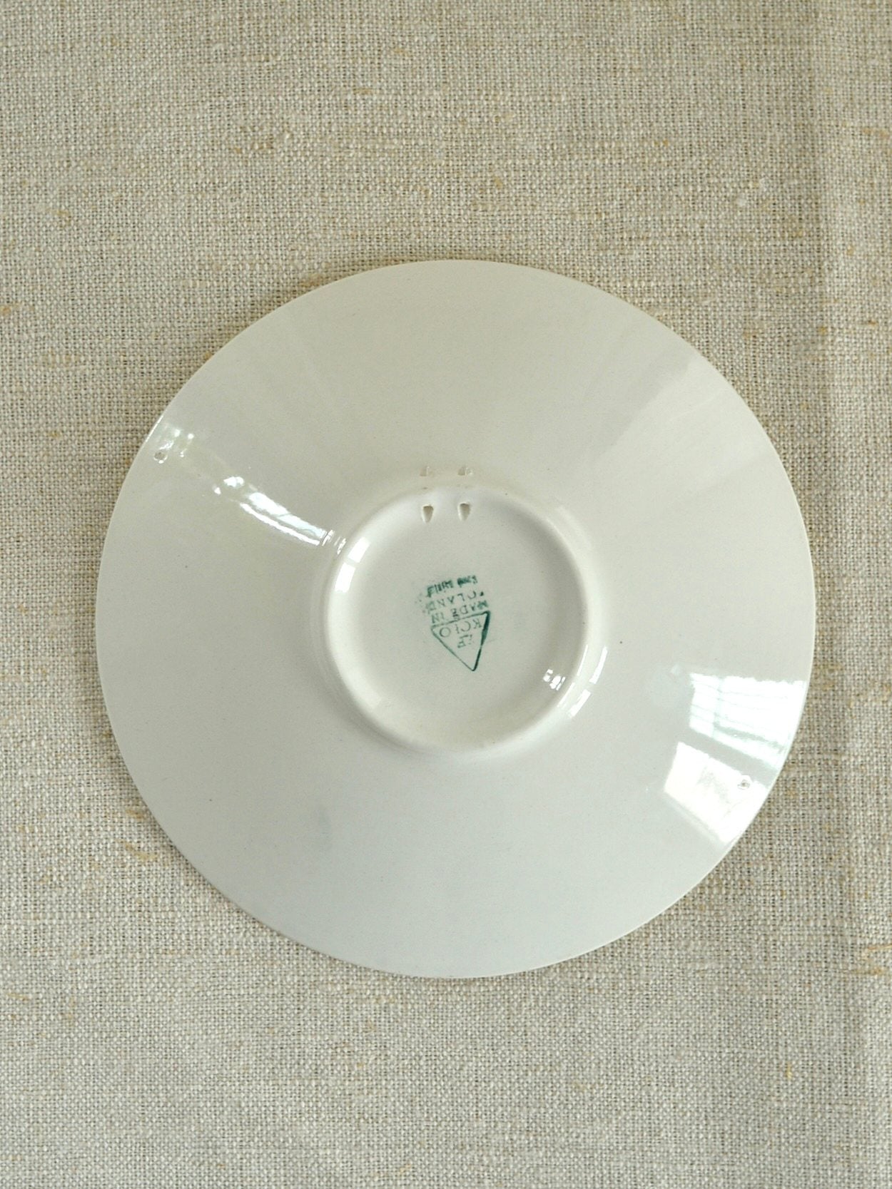 壁掛け用の穴があいているので壁にかけて飾り皿としても楽しめます。絵を飾るように壁にヴィンテージのお皿を飾ると空間のアクセントになっておすすめです。