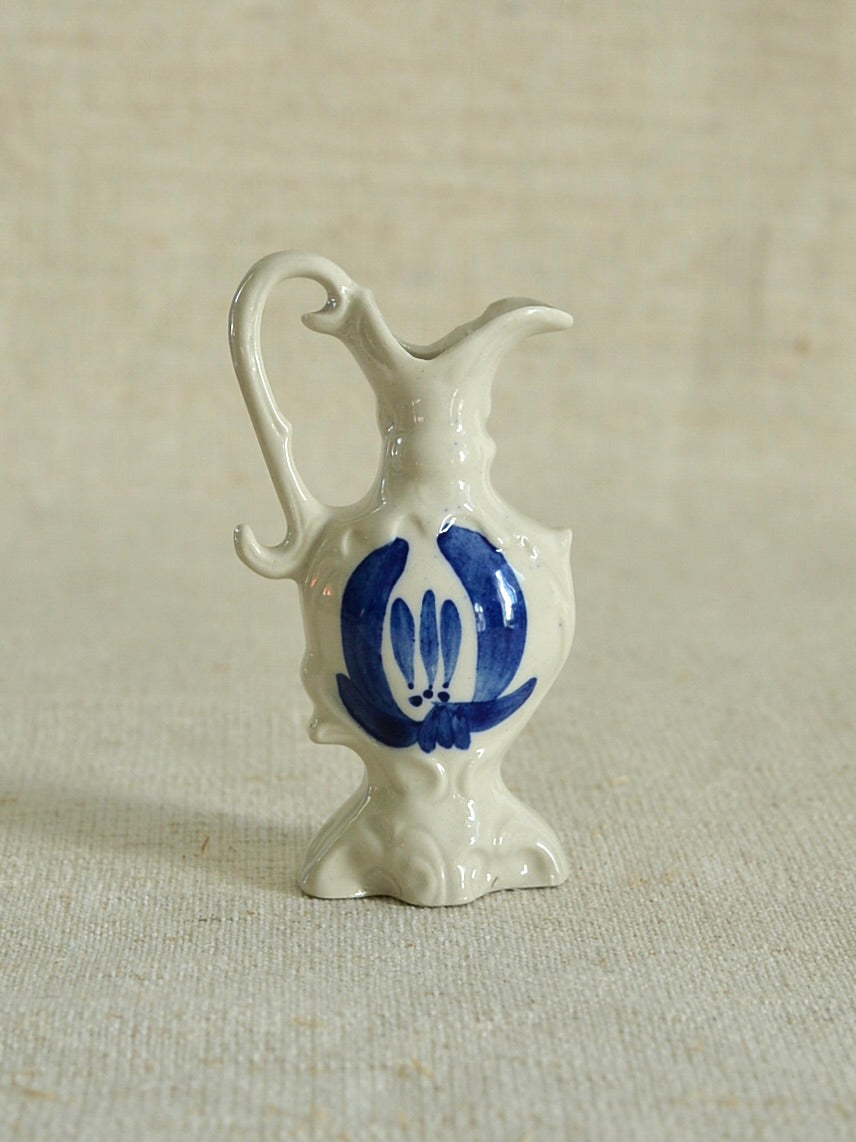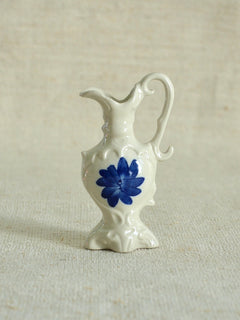 ポーランドのアンティークショップで見つけたヴィンテージのクリーマーです。生産国・年代は不明です。白い磁器に両面に描かれたブルーの花模様が可憐な佇まいで買い付けました。