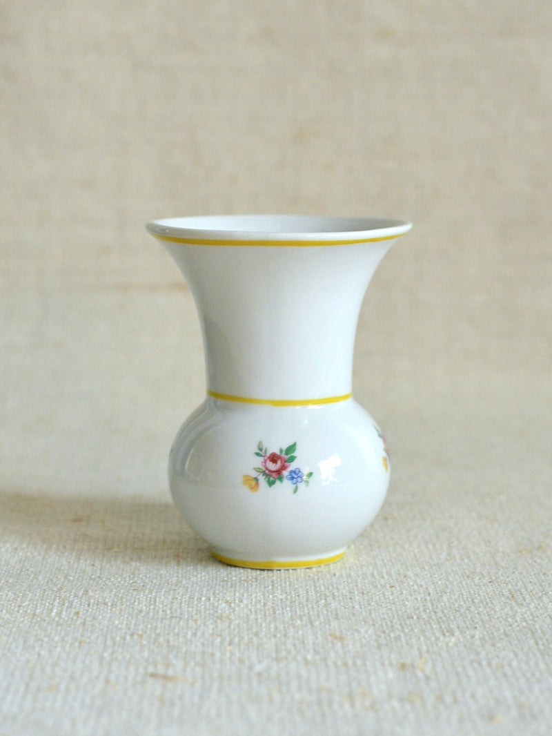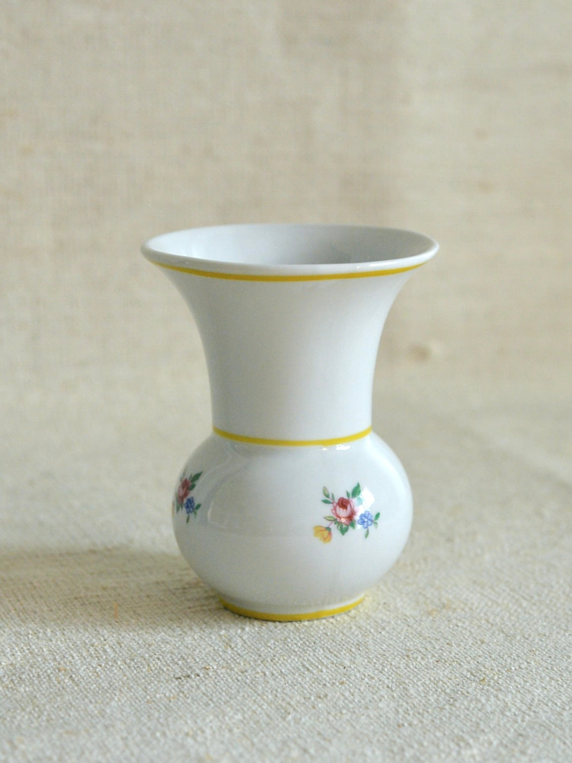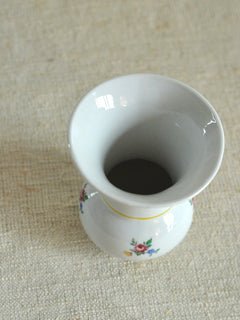 1804年創業のポーランドの老舗陶器ブランドĆmielówのヴィンテージのフラワーベースです。白い磁器にマイセンの散らし小花のような小さなバラが可憐な佇まいです。