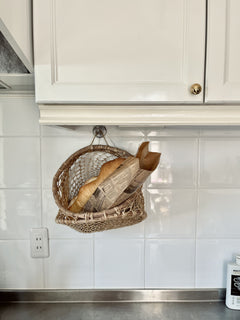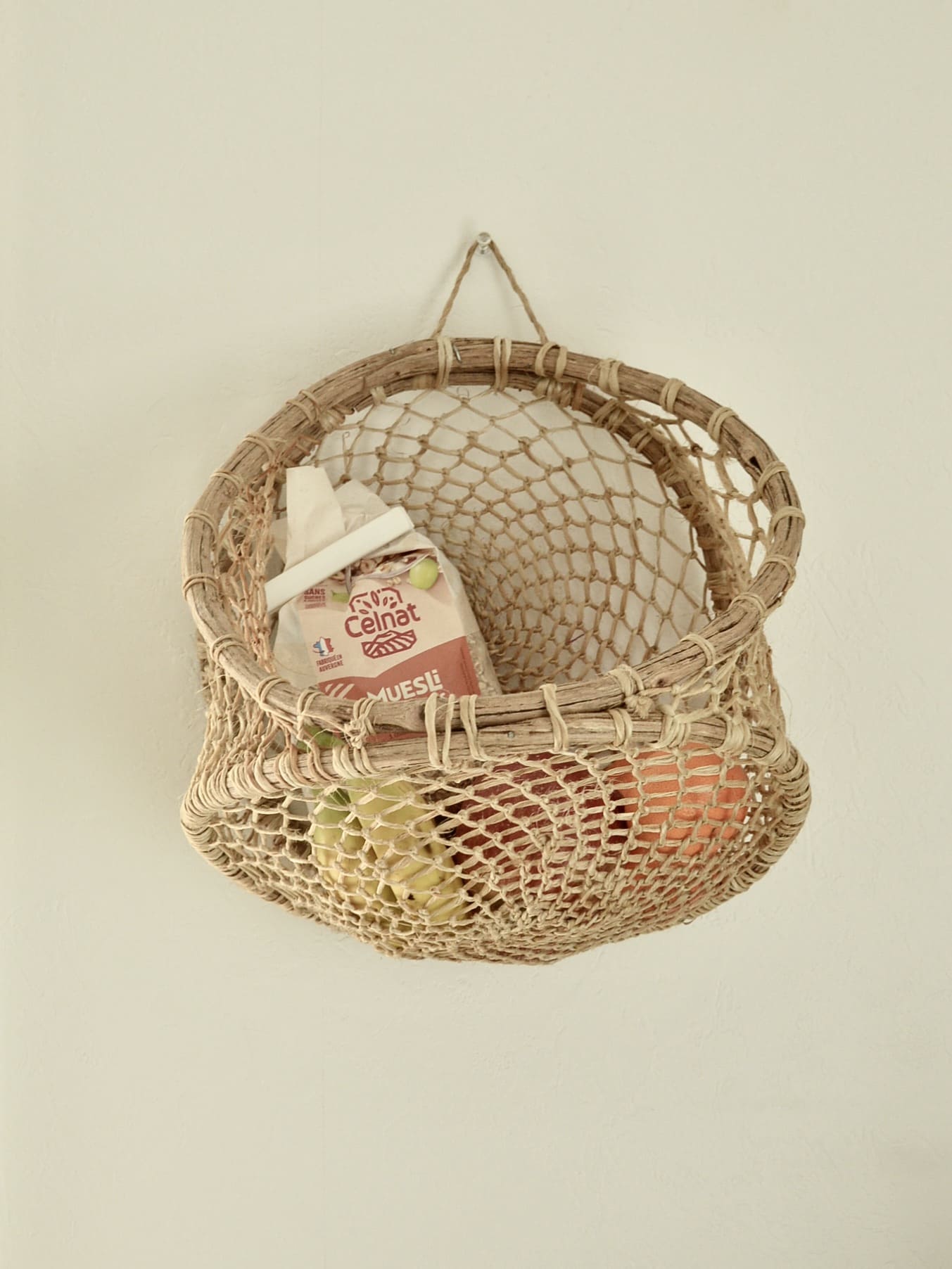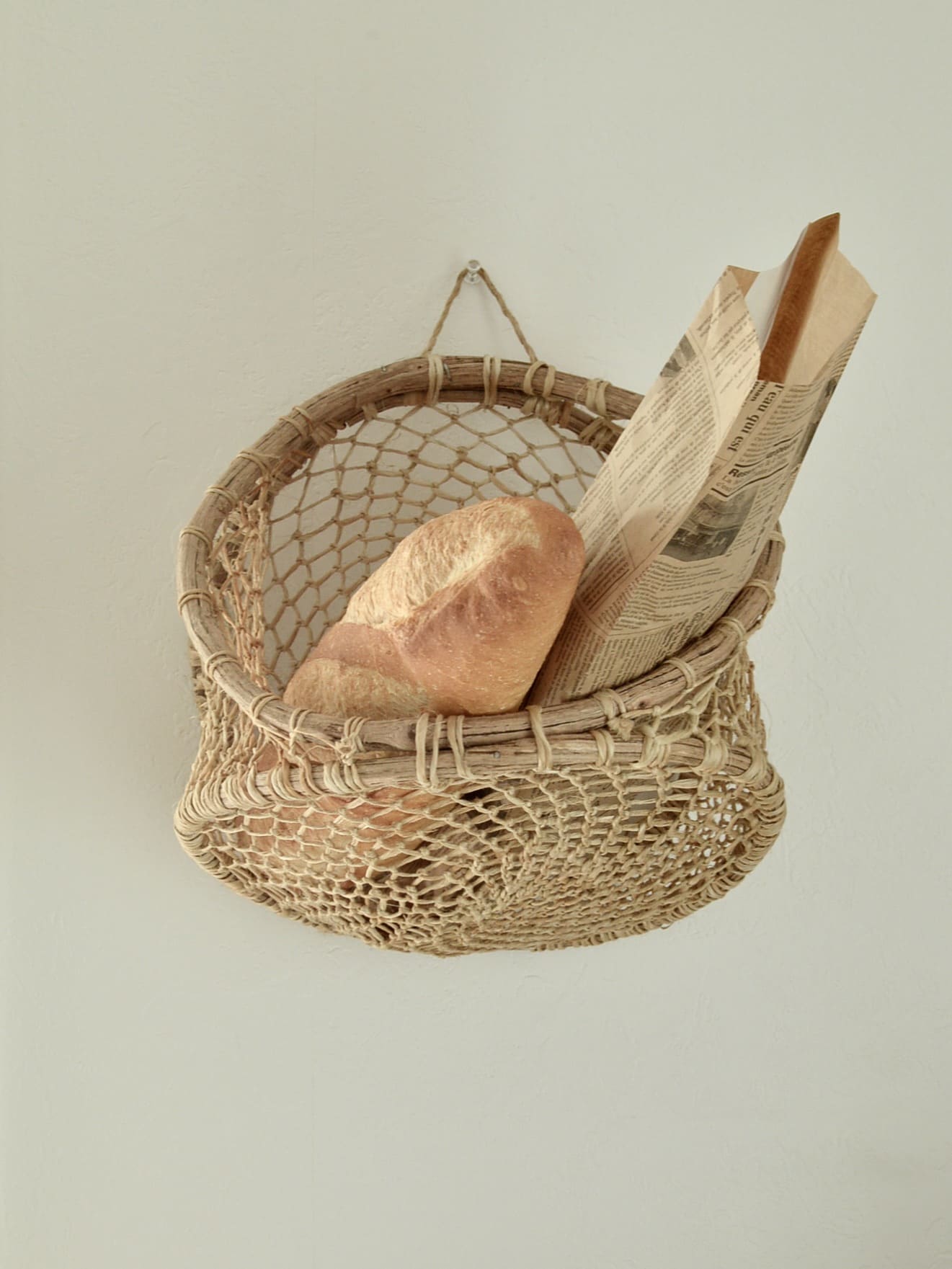 通気性が良いので、キッチンの壁にかけてパンや野菜などの食べ物を置いたり、バスルームのタオル収納に。