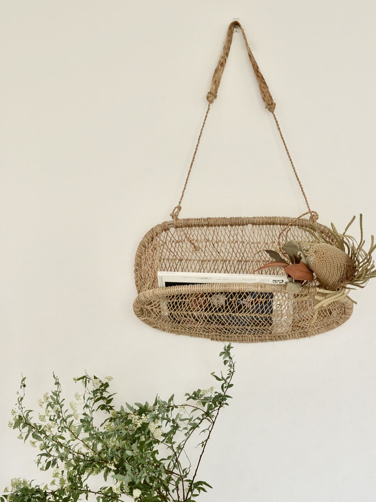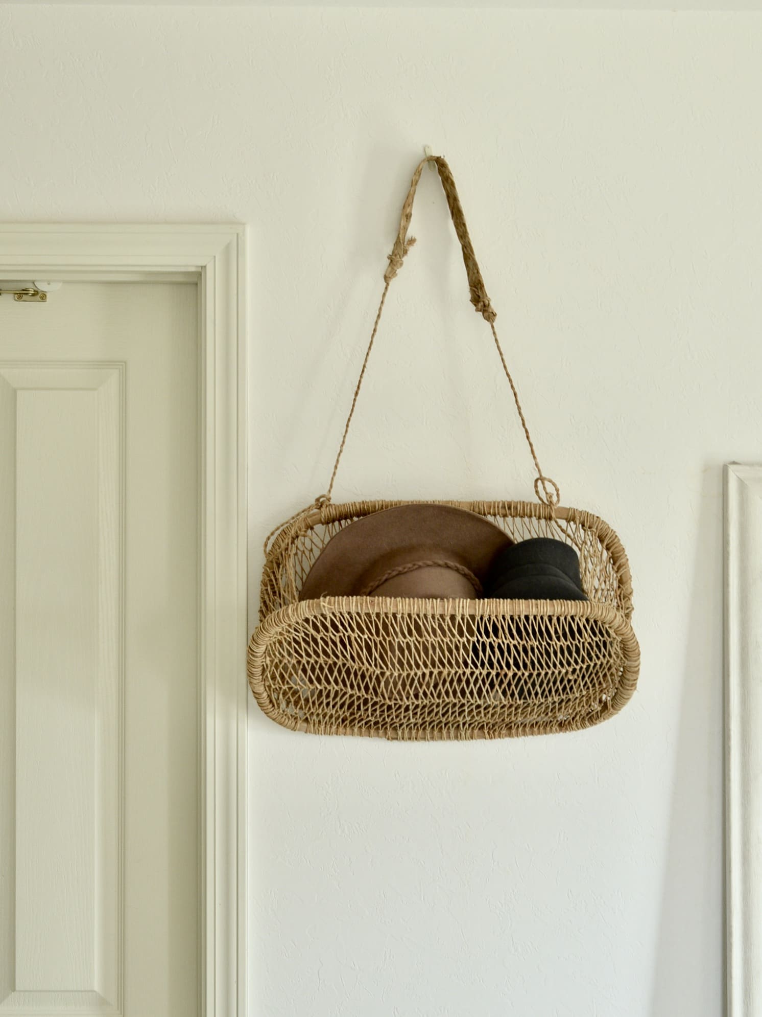 通気性が良いので、キッチンの壁にかけてパンや野菜などの食べ物を置いたり、バスルームのタオル収納に。