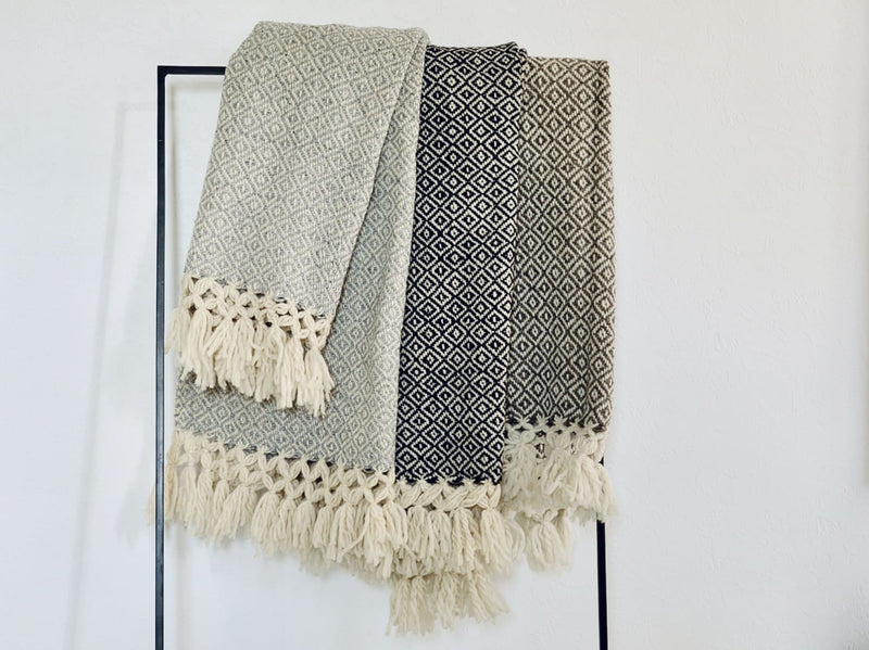 家では椅子やソファーにかけて肌寒いときにひざ掛けや肩に巻いたり、