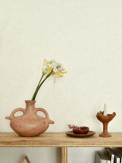 マットな仕上がりとコーティングのない大地の色そのままの素焼き、さらりとした土の手触りが魅力。