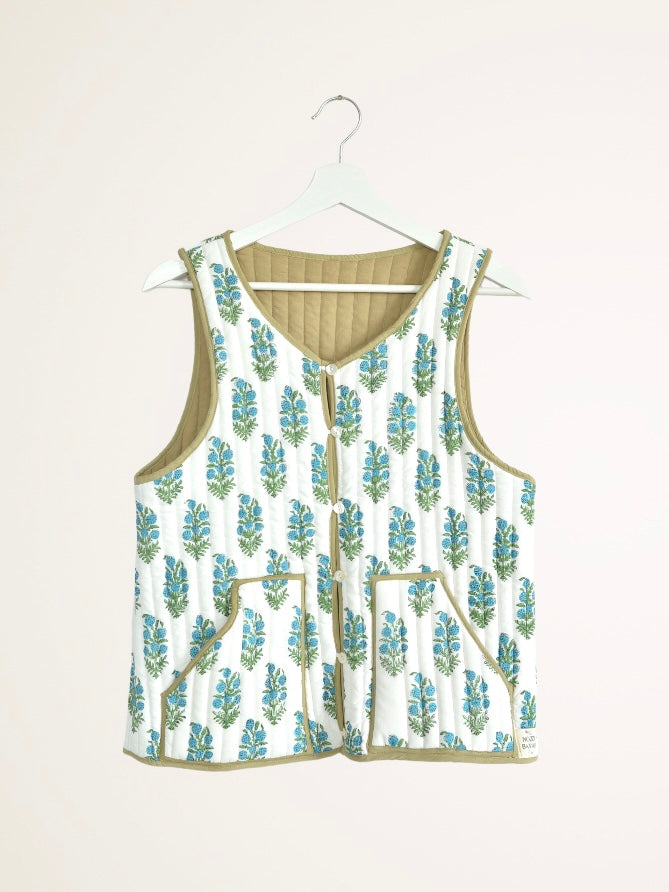 草木染めとハンドブロックプリントのリバーシブルベスト。