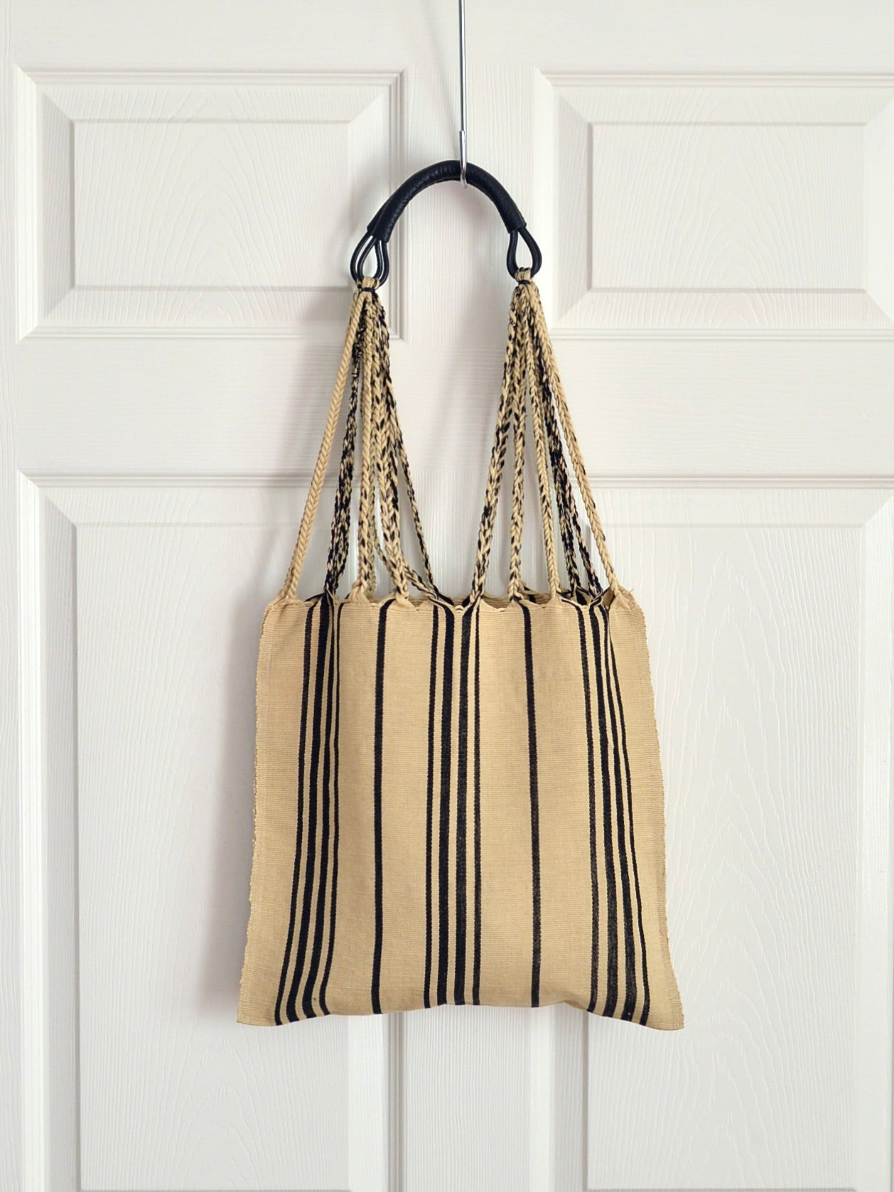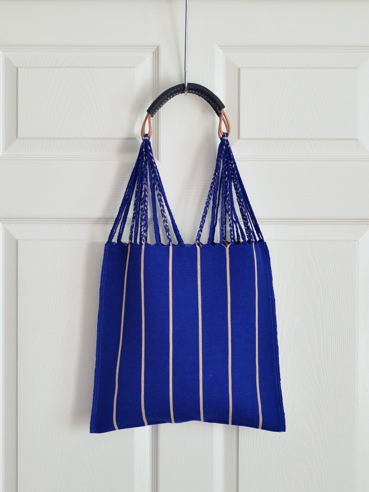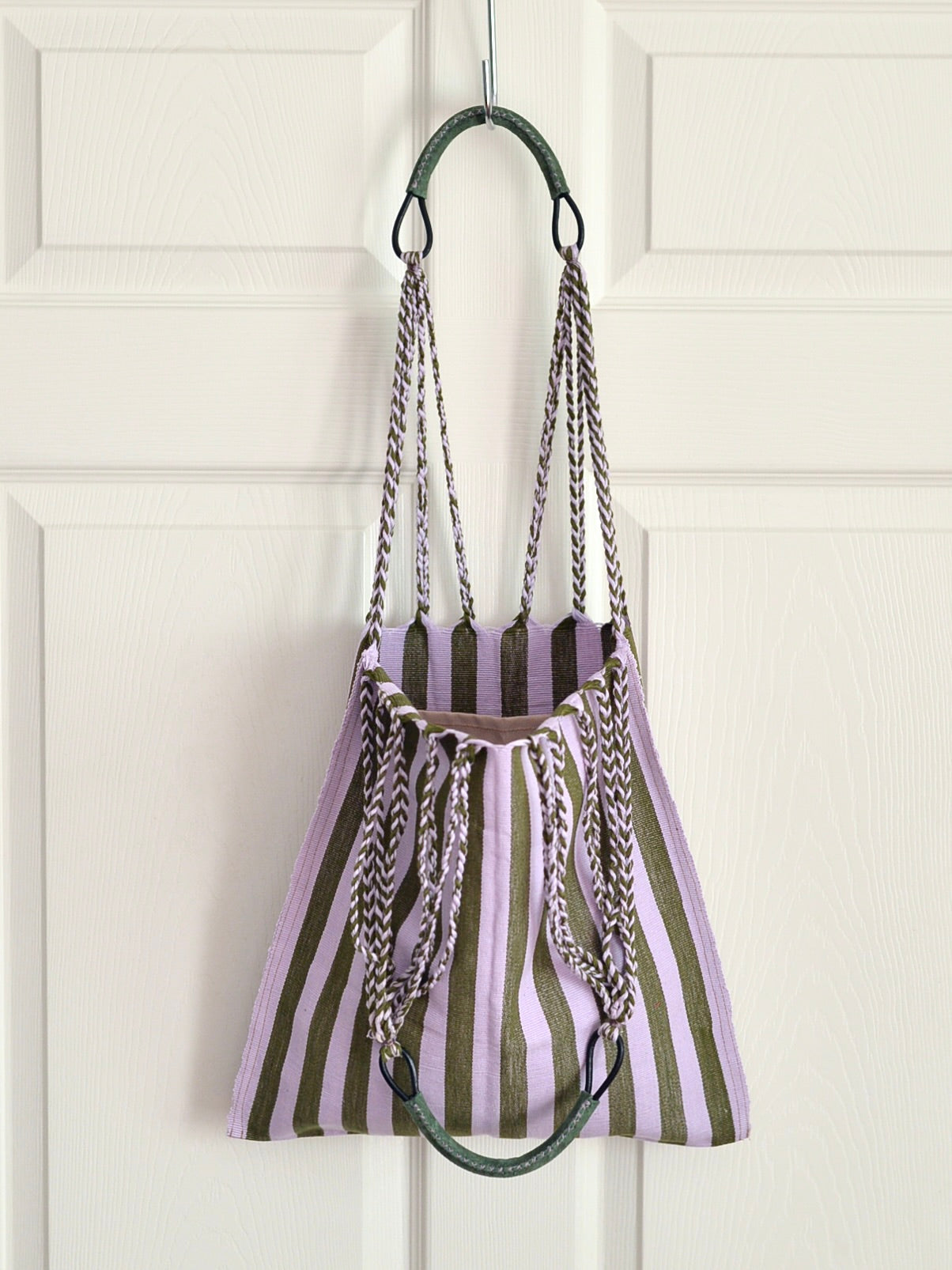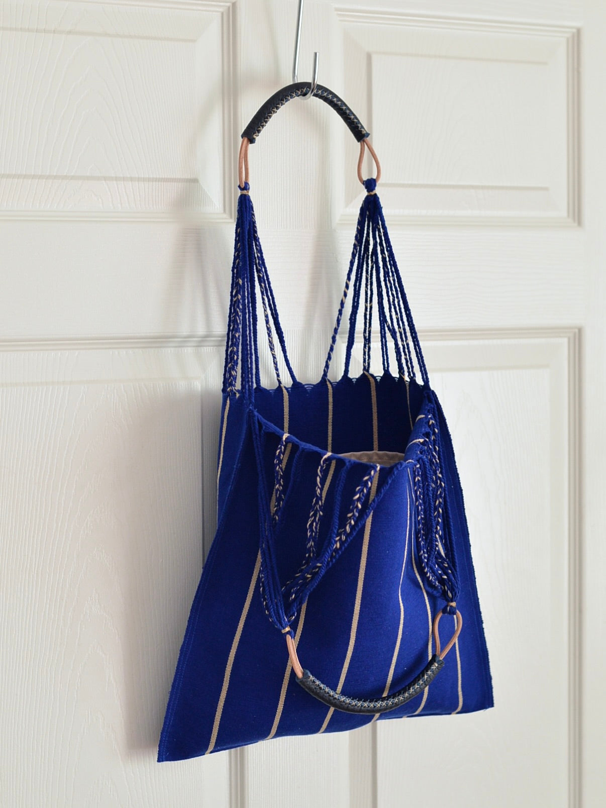 驚くほど軽くてコンパクトに折りたためるハンモックバッグ。今年からレザーハンドルにアップデートして耐久性が向上しました。メキシコのインディヘナと共同製作のNOZZI BAZZARオリジナルデザインです。