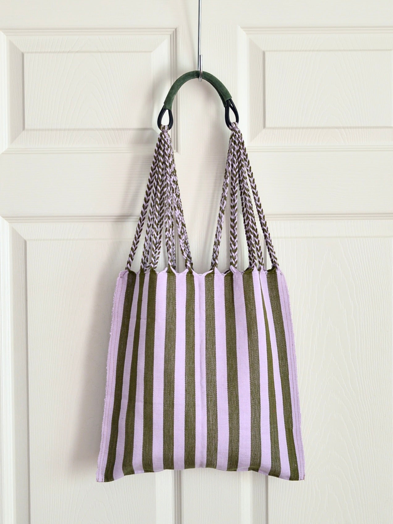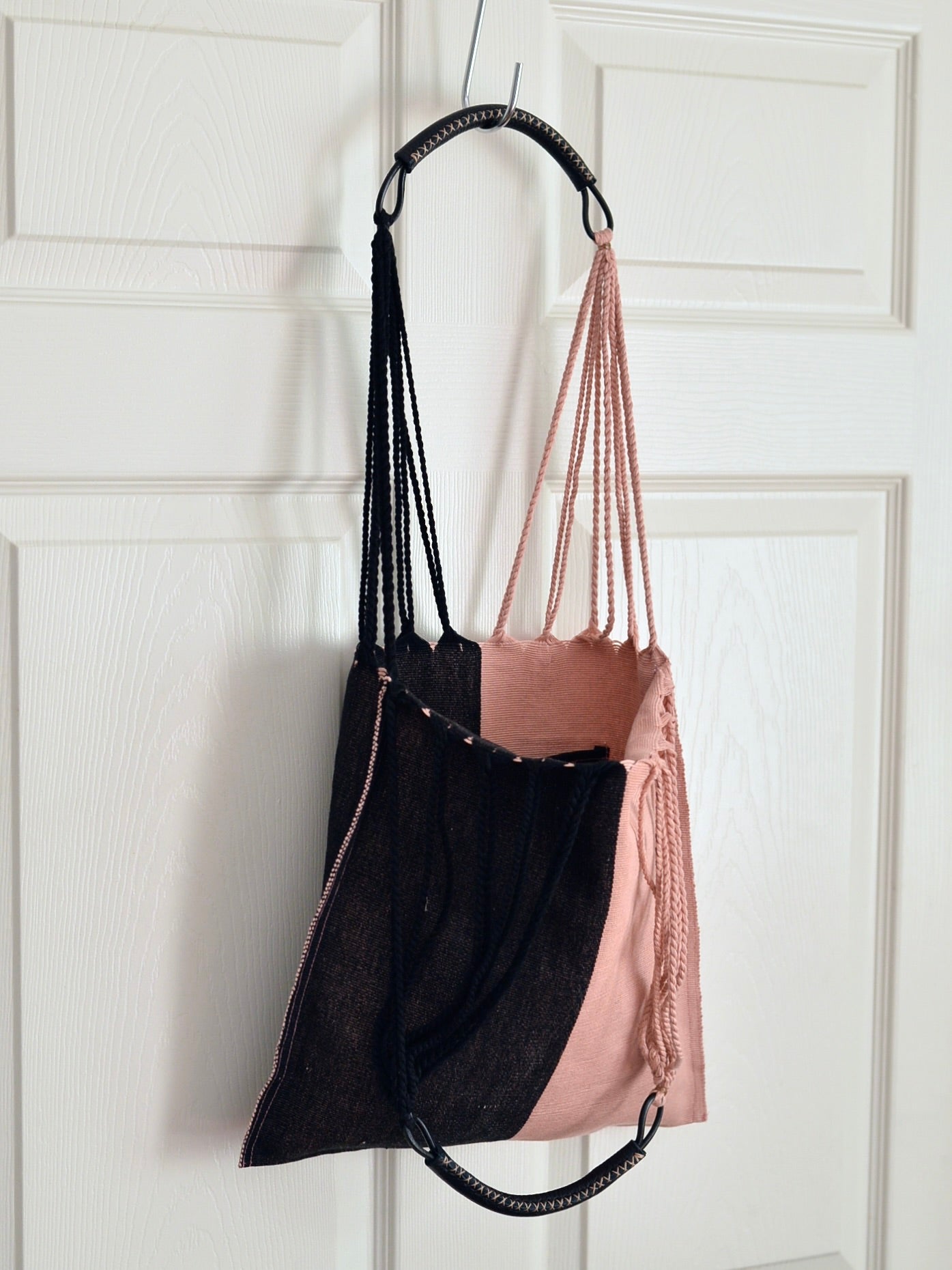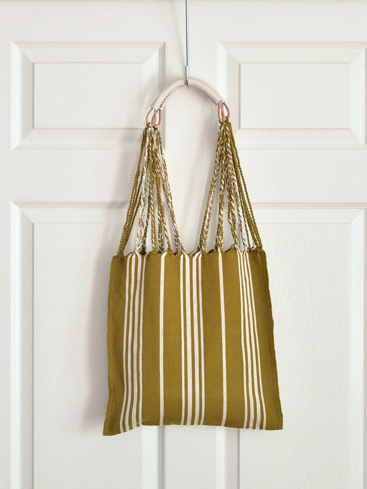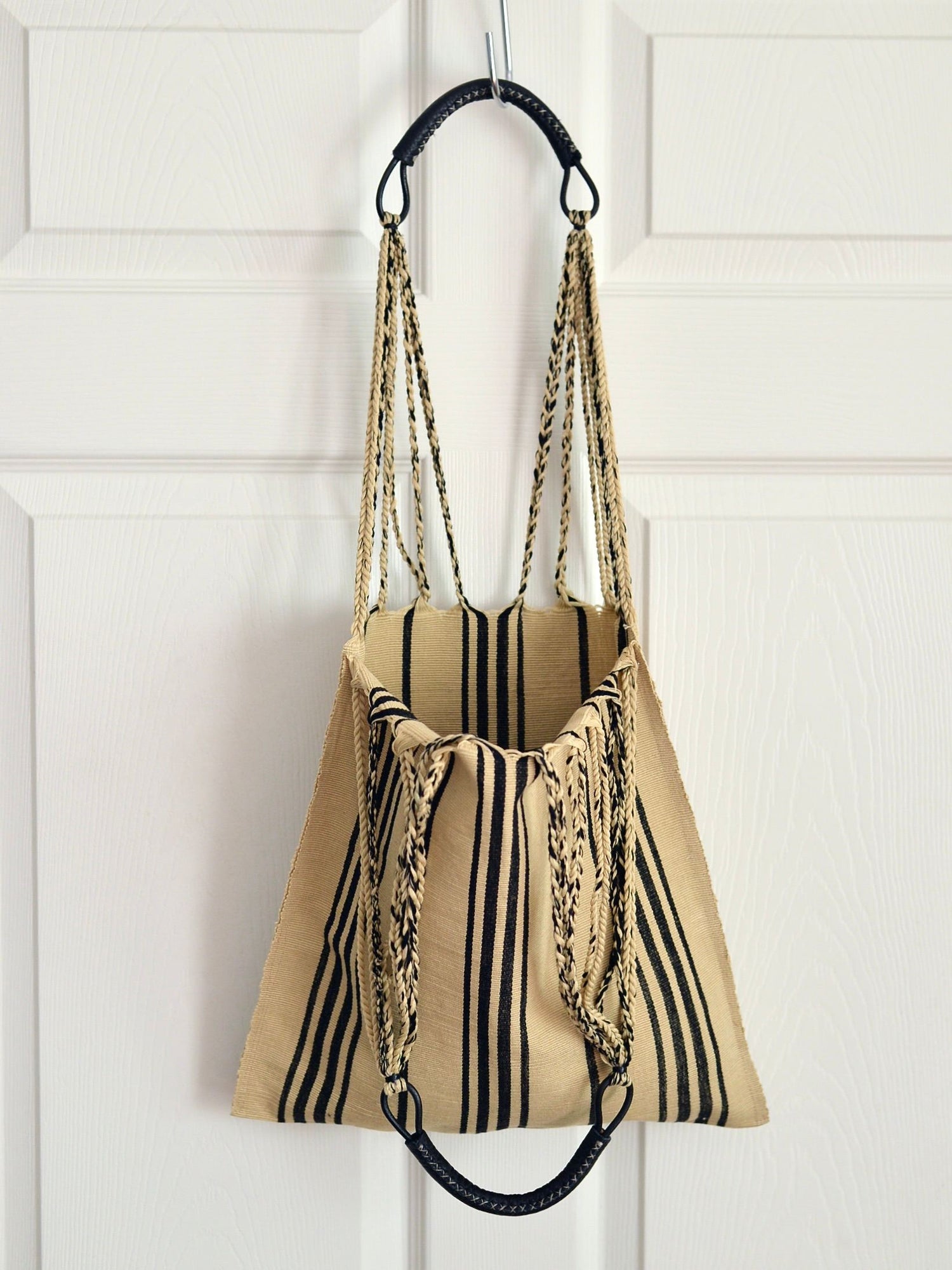 驚くほど軽くてコンパクトに折りたためるハンモックバッグ。今年からレザーハンドルにアップデートして耐久性が向上しました。メキシコのインディヘナと共同製作のNOZZI BAZZARオリジナルデザインです。
