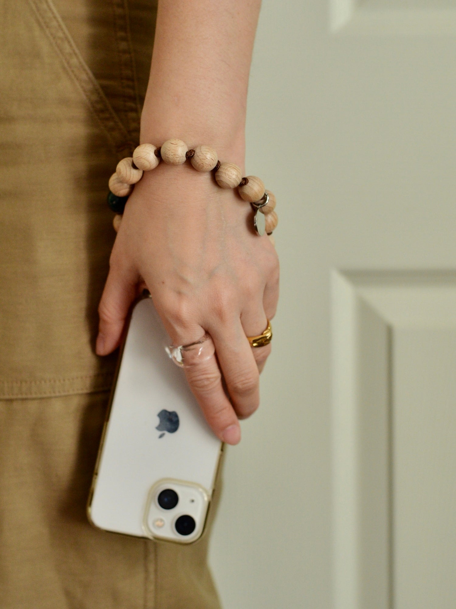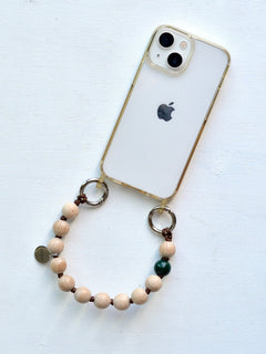 素材:FSC®︎認証ウッドビーズ、パラコード、巾着袋(透明ストラップホルダー、スマホケースは付きません)ストラップホルダーはこちらからお求めください。