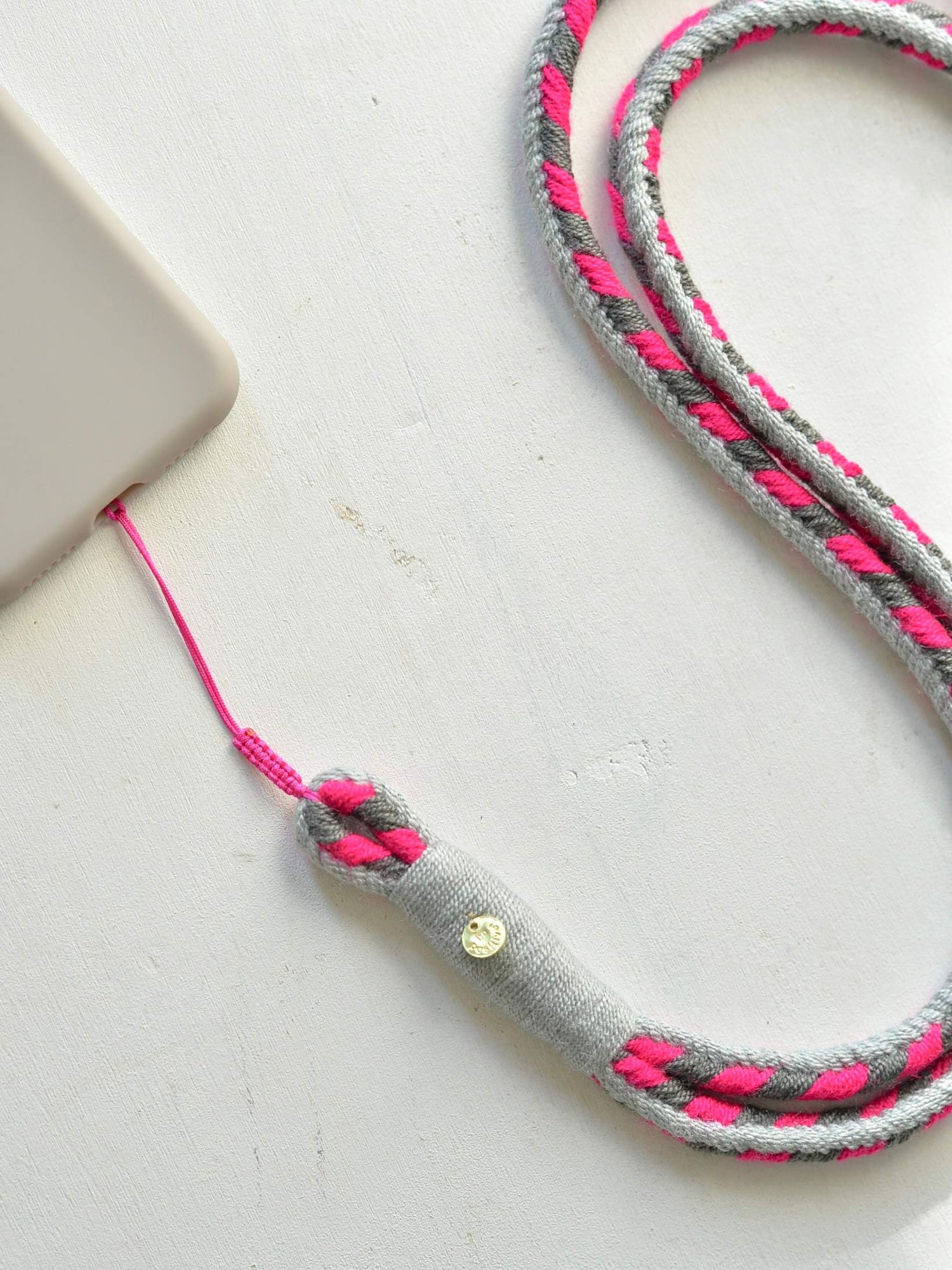 先端の紐は劣化しにくいアクリル糸で一般的なスマホの重さには耐えられますが、万が一通常使用で切れた場合は新しく蝋引き紐をこちらで付けることができますのでお問い合わせください。
