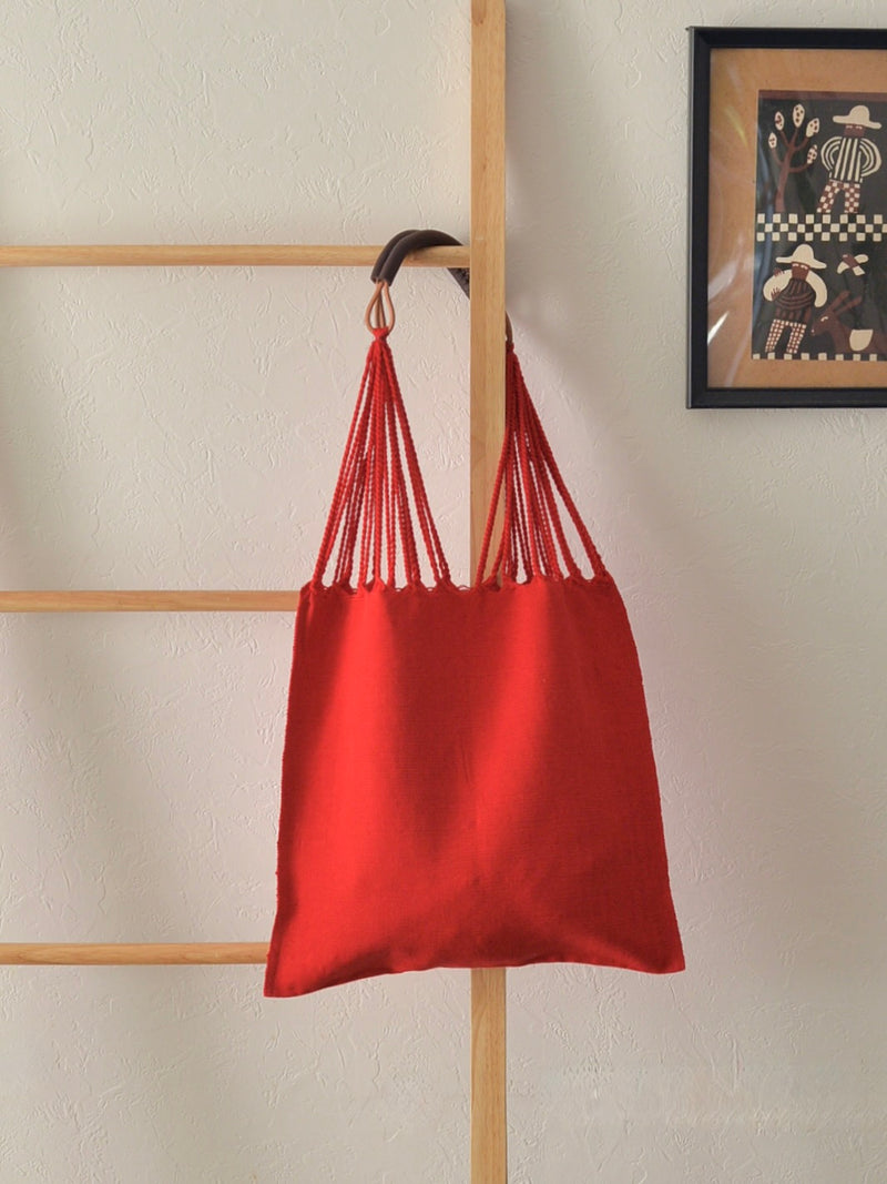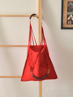 メキシコ ハンモックバッグ 無地 レッド レザーハンドル