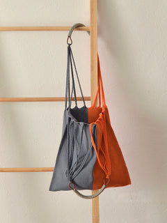 メキシコ ハンモックバッグ レザーハンドル ツートン グレー×オレンジ