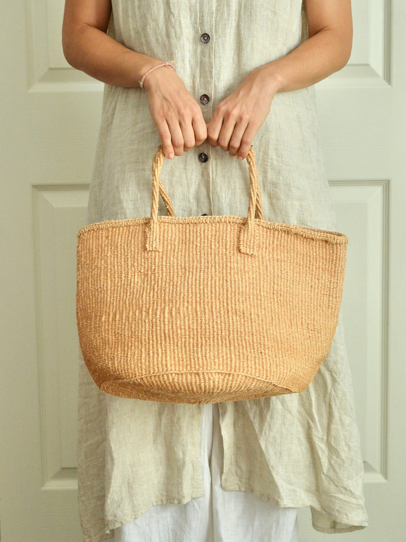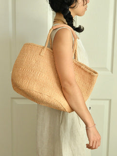 ケニアの女性たちが受け継いだ伝統技術で編むサイザルバッグは、しなやかで軽く、使うほどに手になじみます。