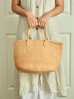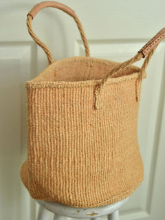 【残り1点】ケニア サイザルかごバッグ レザーハンドル