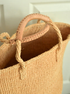 とても丈夫なサイザルバッグがレザーハンドルによってさらに頑丈に持ちやすくなっています。
