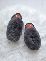 中に羊毛が敷き詰められているので素足で履いてもあたたかく、モコモコのファーが甲まわりも包み込んでくれます。
