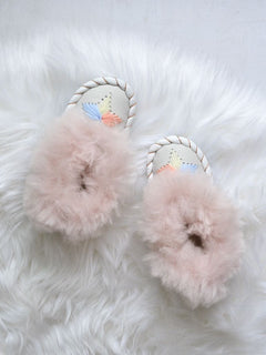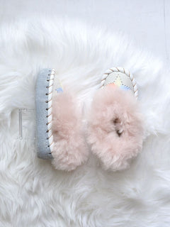 中に羊毛が敷き詰められているので素足で履いてもあたたかく、モコモコのファーが甲まわりも包み込んでくれます。