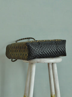 メルカドバッグの生産背景はさまざまで、もともと植物の繊維を割いて作る「かご」編み職人が、多くの工程を要する植物素材の代わりに再生プラスチックコードを使うようになり生産していることや、社会復帰の職業訓練として受刑者が作ることもあります。