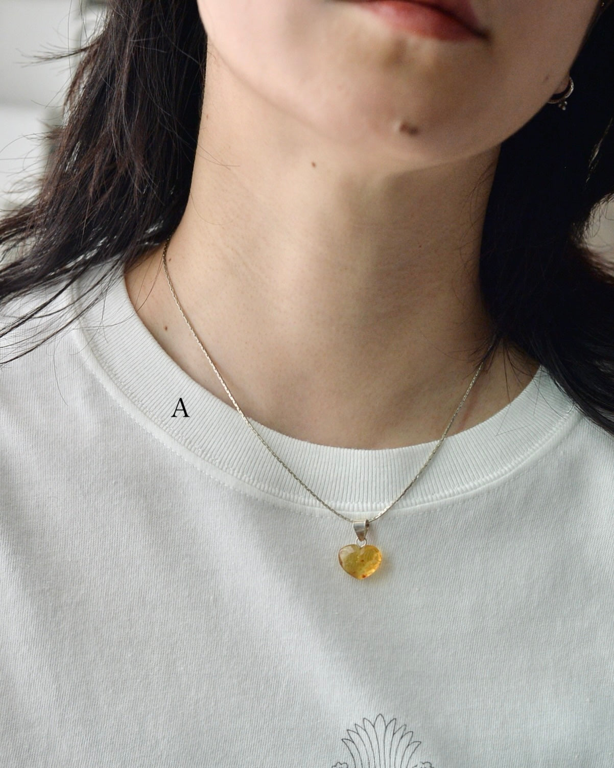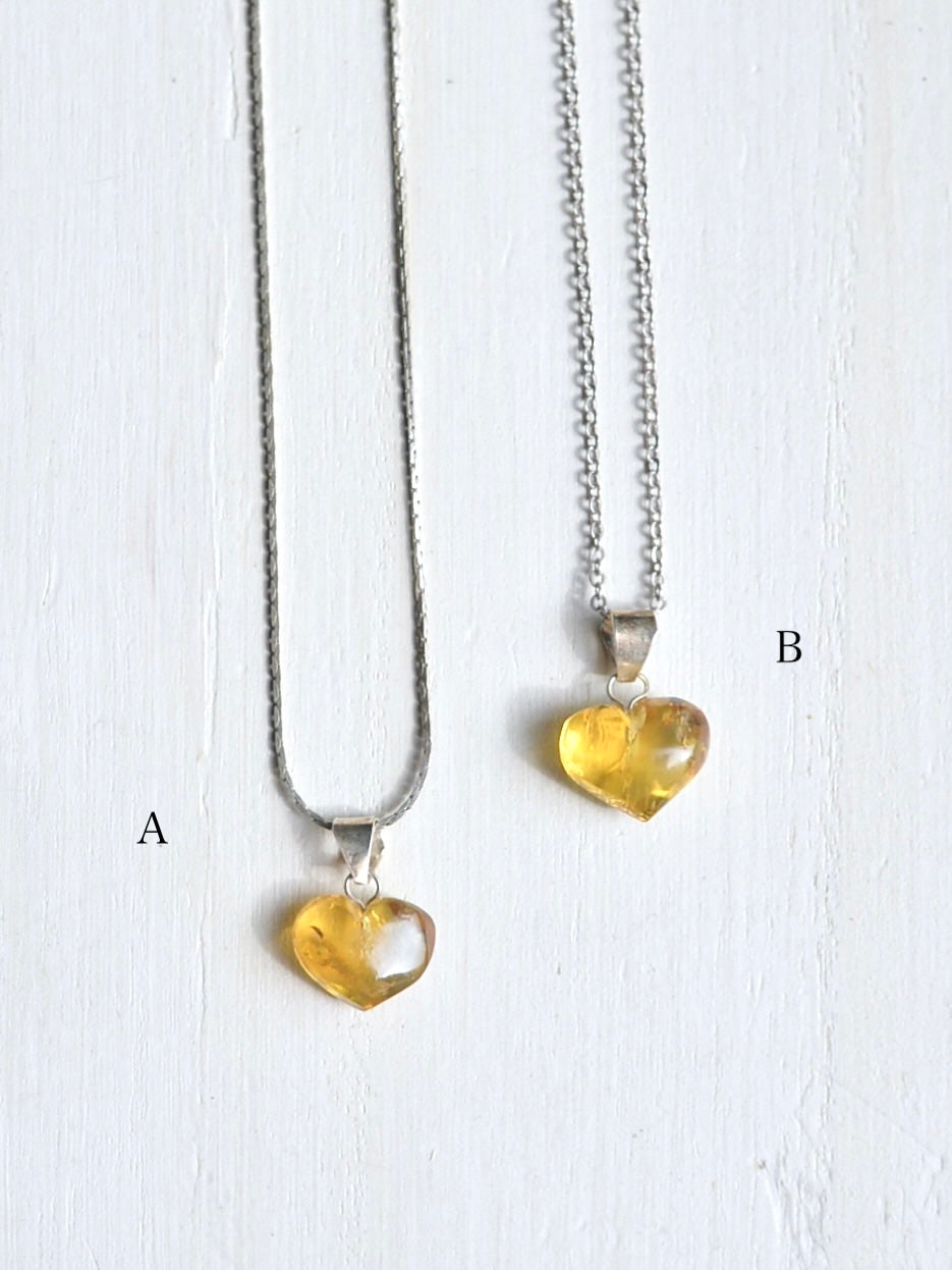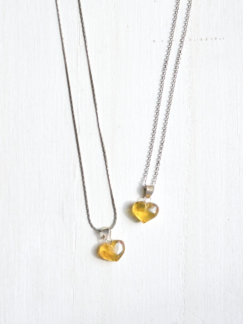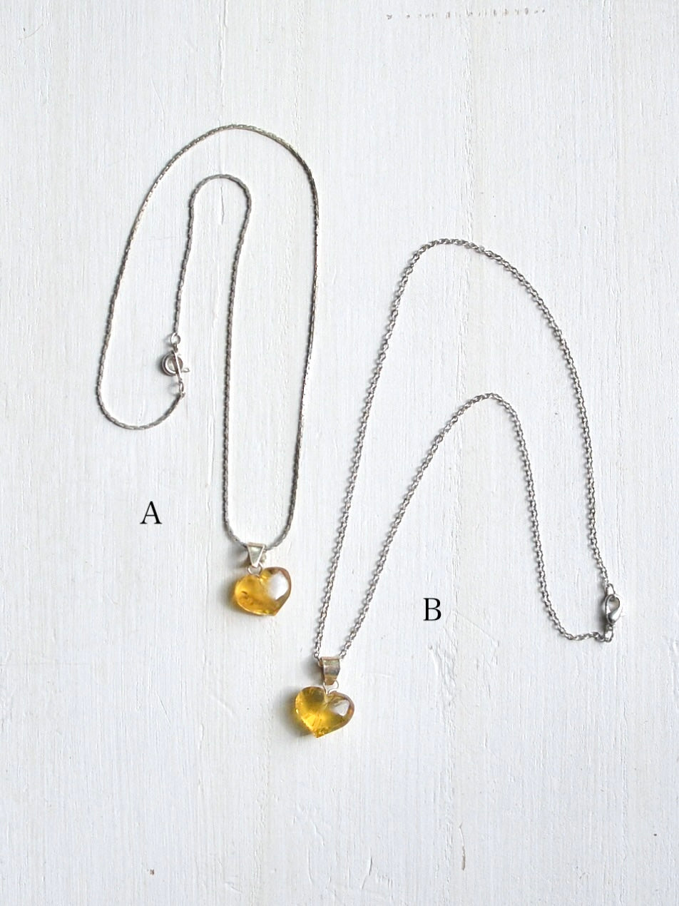 ポーランドの蚤の市で出合ったヴィンテージのチェーンに、メキシコで買い付けたアンバー(琥珀)のハートのペンダントトップをあわせました。