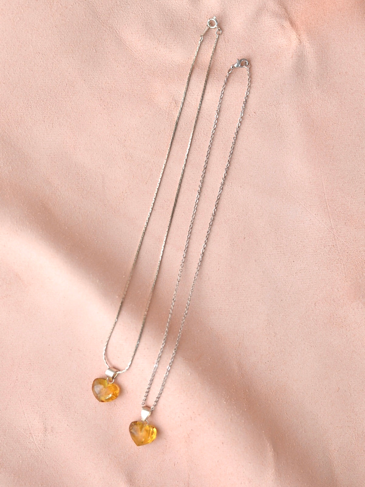 メキシカンアンバー ハート&ヴィンテージチェーン ネックレス