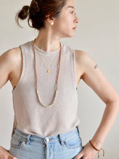革のバッグやベルト等を生産するときに発生してしまう端切れをネックレスにアップサイクルしています。