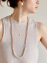 クリームとピンクのビーズは艶があり、質感の異なる組み合わせになっています。