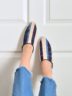 モロッコの伝統布ヴィンテージの「HIKE(ハイク)」をリメイクした、外履き可能なプレミアムバブーシュ。