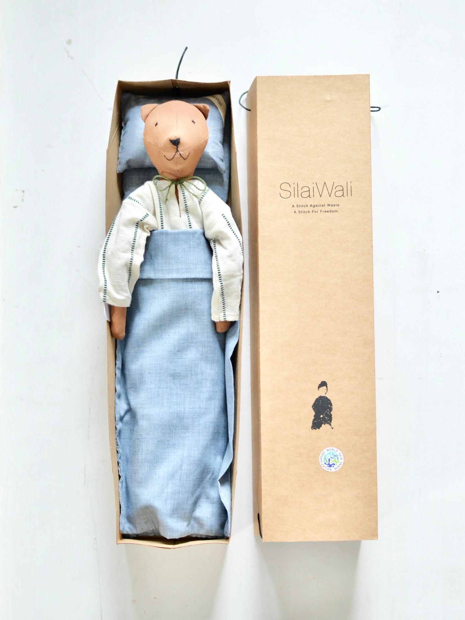 人形が着ているドレスをはじめ、Slilaiwaliが作るアイテムは衣料品製造業界からの繊維くずやデッドストックをアップサイクルしています。