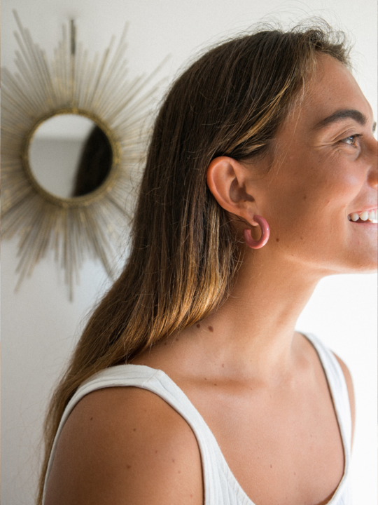 再生可能な資源である木材パルプを原料に作られているピアス。