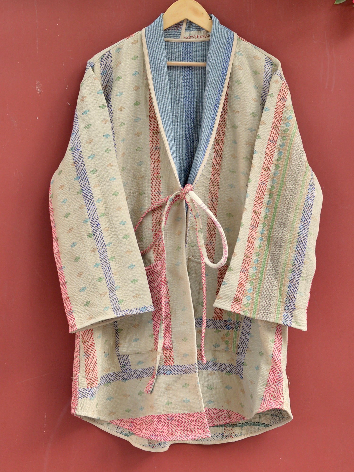 インドで膨大なストックの中から選んだカンタキルトをジャケットに仕立ててもらいました。