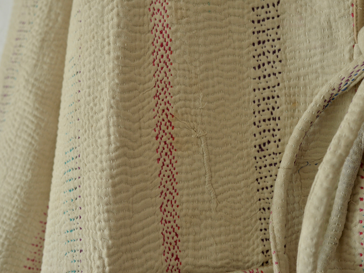 カンタキルト、ラリーキルト、グドゥリーと、様々な呼び名があるこの布は、インドの手仕事が詰まっています。
