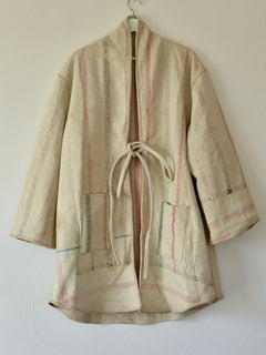 インドで膨大なストックの中から選んだカンタキルトをジャケットに仕立ててもらいました。
