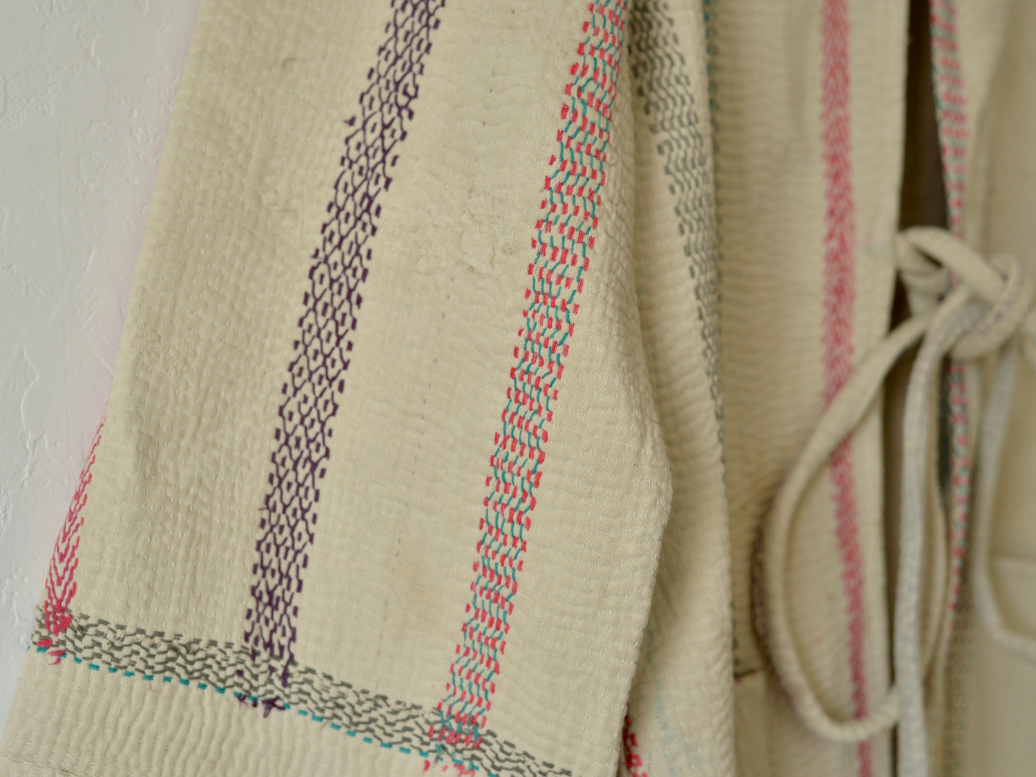 生地の織り、木版によるブロックプリント、何層にも重ねられた染め、刺繍で施された刺繍、丁寧な刺し子…